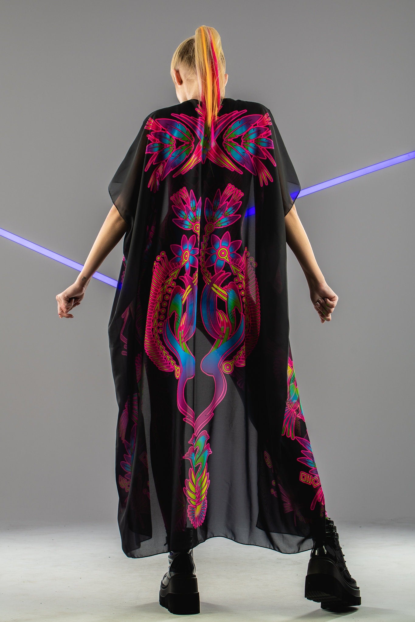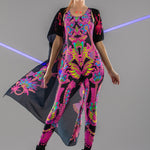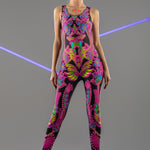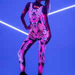One-piece NEON FLOWERS FLUORESCENT jumpsuit with a neckline and very unique neon tribal design. Choose the outfit that will attract attention & hypnotize everyone around you!