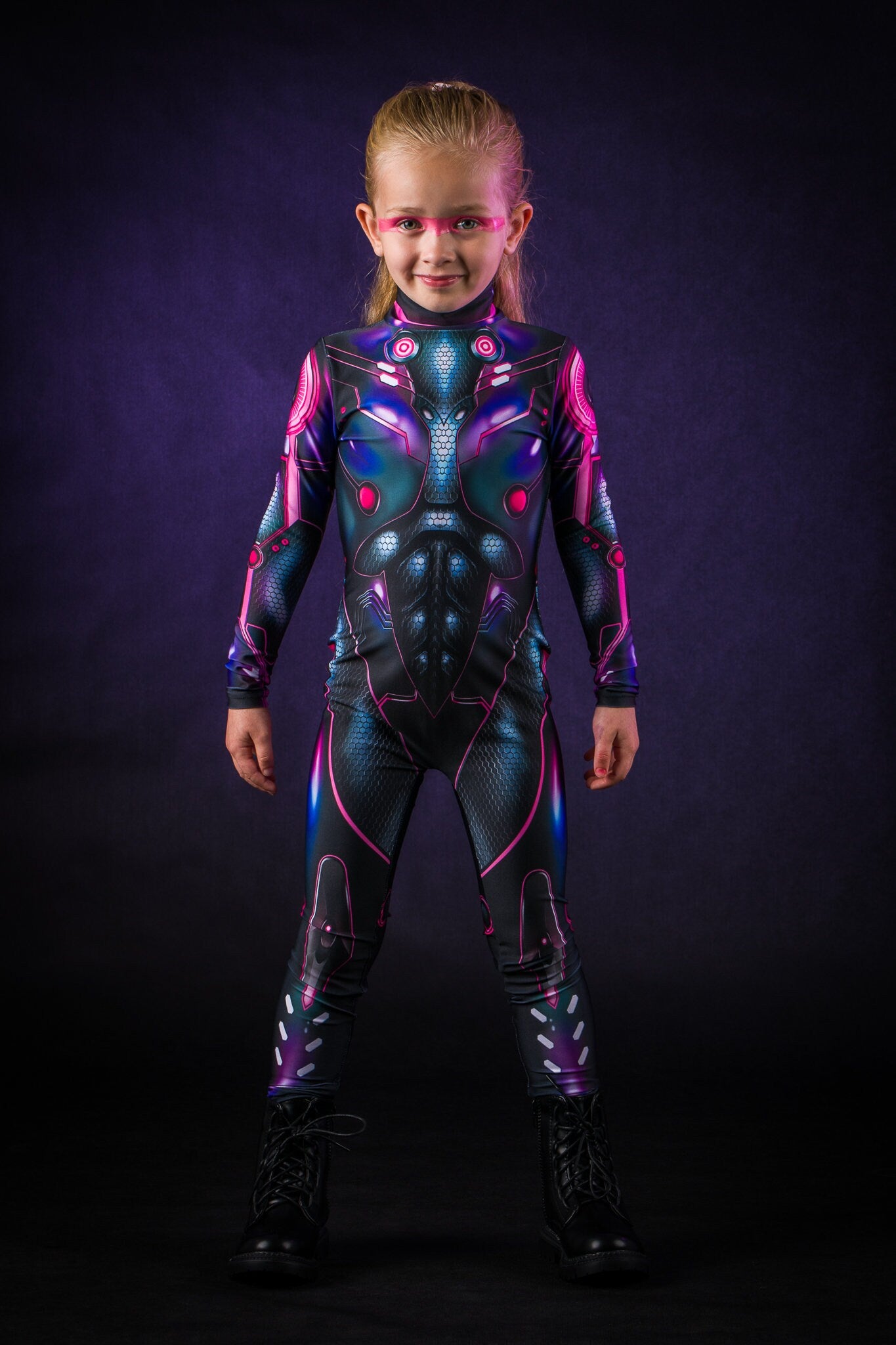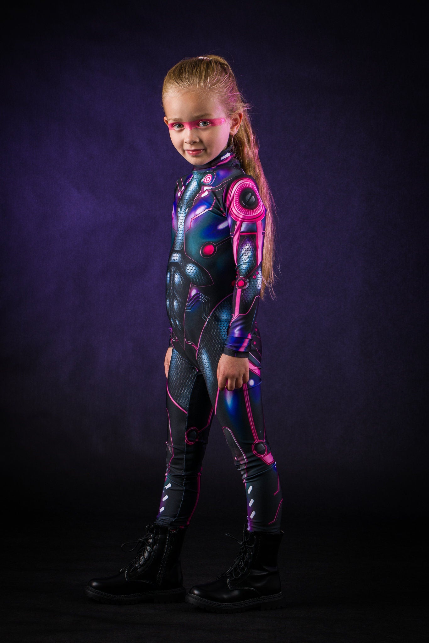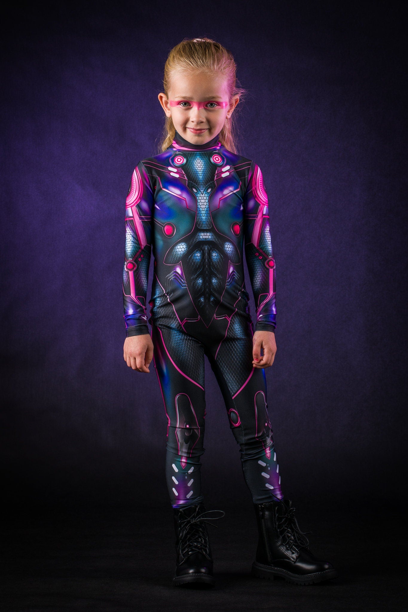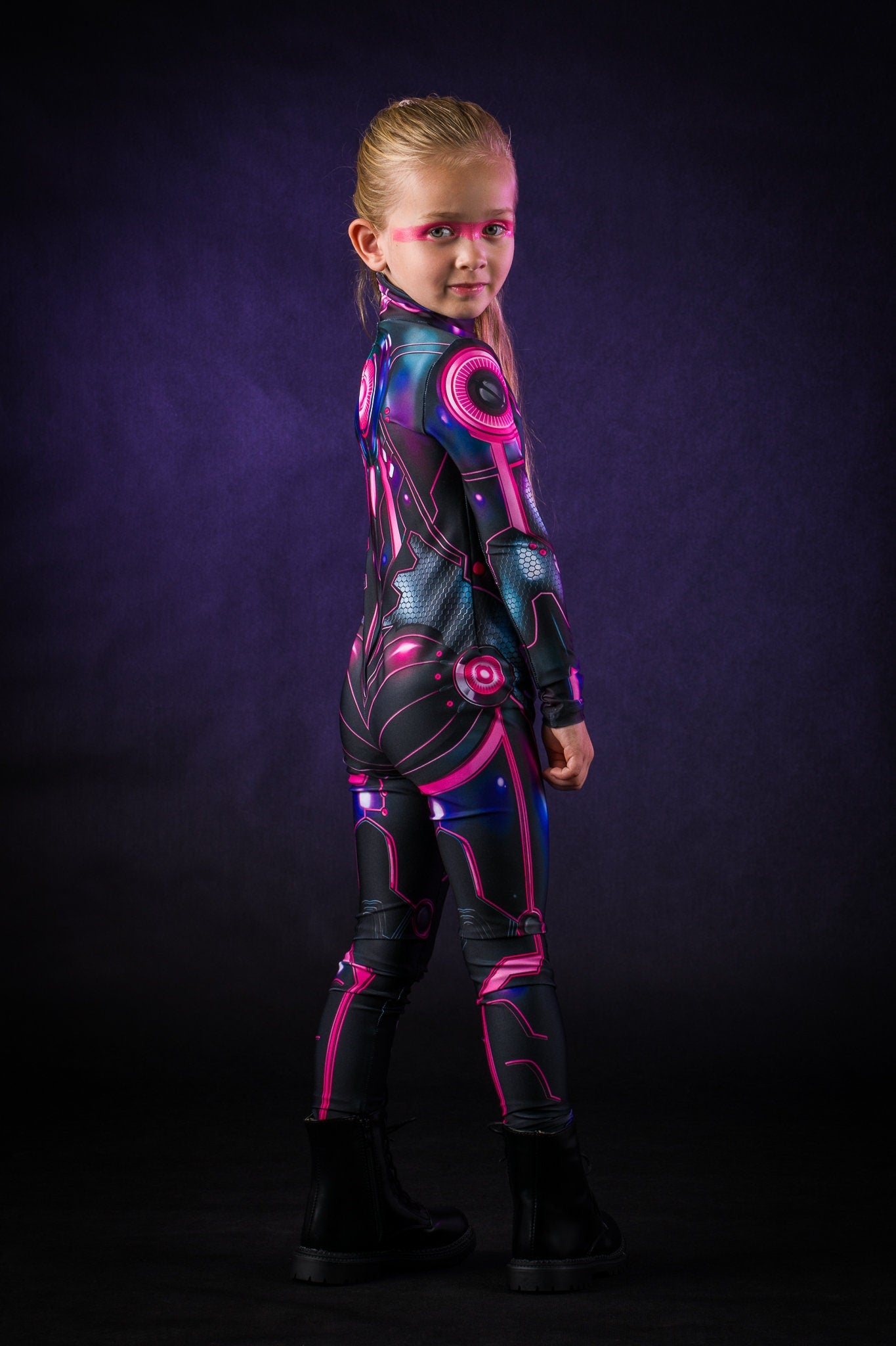 Let your child stand out from the crowd! A one-of-a-kind, artist-designed outfit inspired by cyberpunk style — full of futuristic details and bold visual flair. Perfect for dress-up, Halloween, or imaginative play. ⚡✨