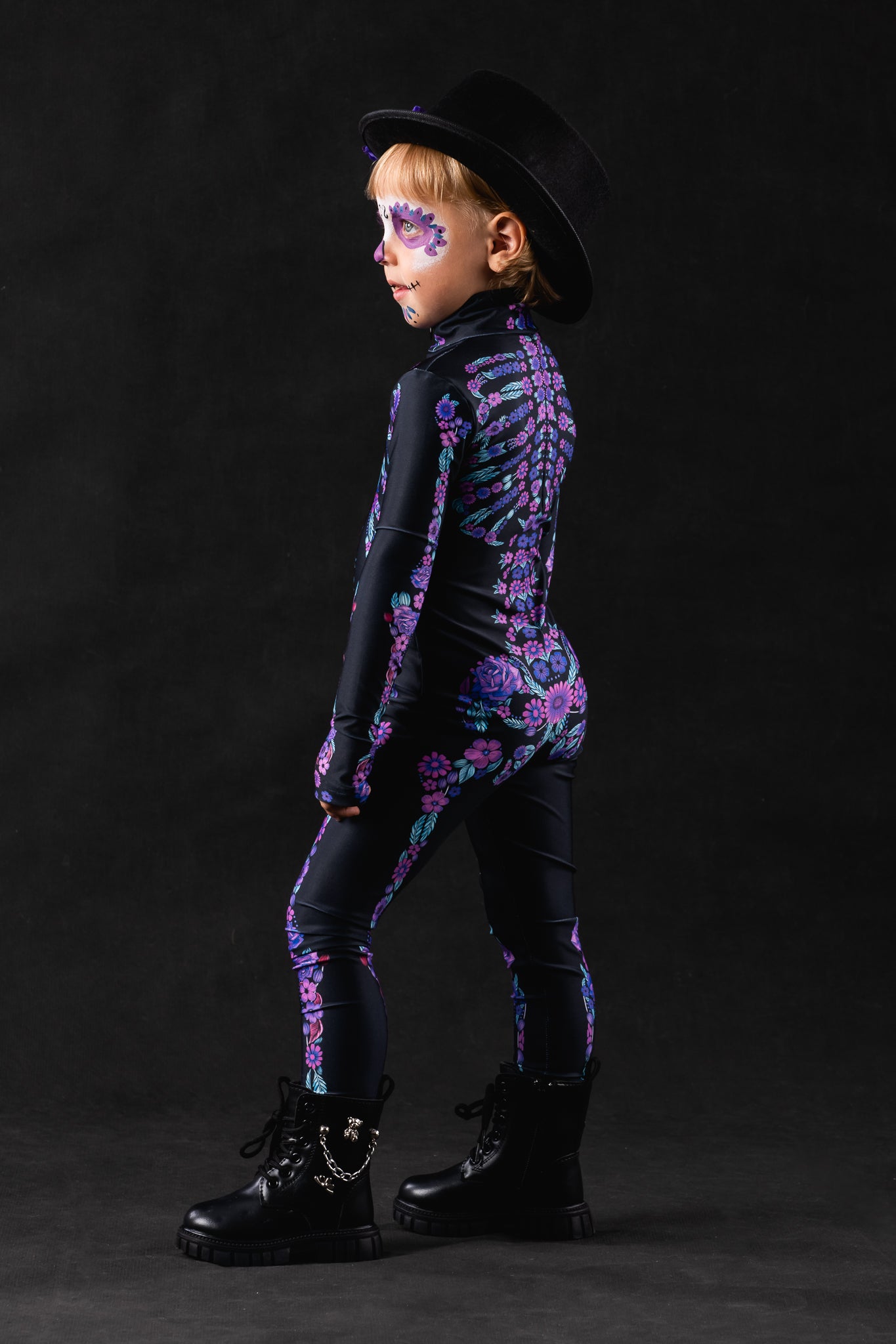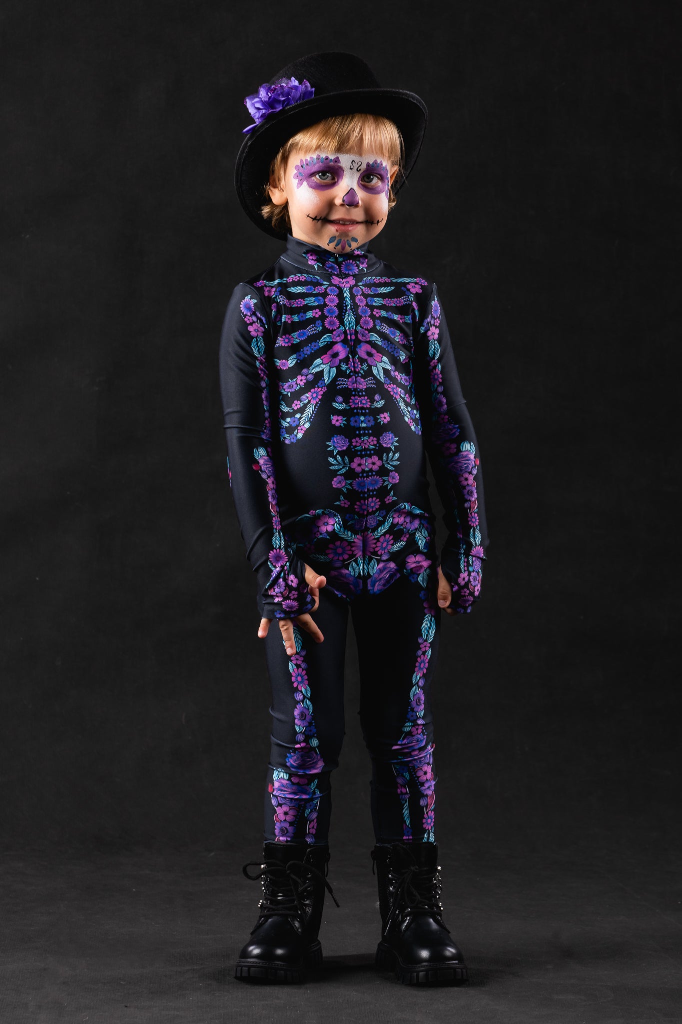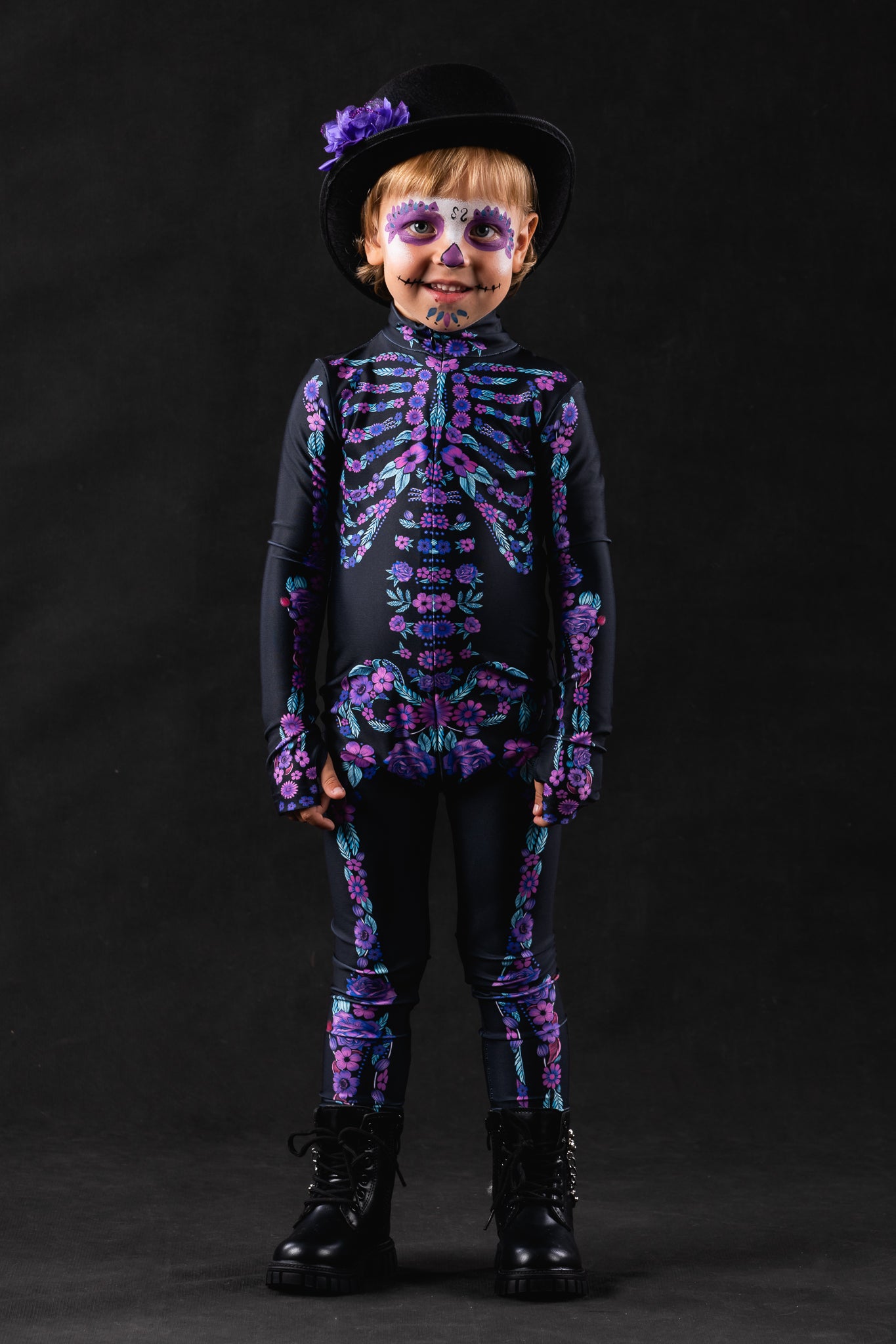 PURPLE FLOWERS Skeleton Costume for Kids
