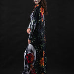 The kimono is made of super soft chiffon and makes an amazing impression with its large print. It perfectly complements our green ornaments skeleton costume but can be combined also with other clothing, creating an incredibly spectacular outfit for various occasions.