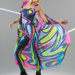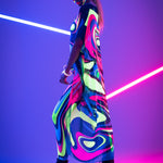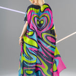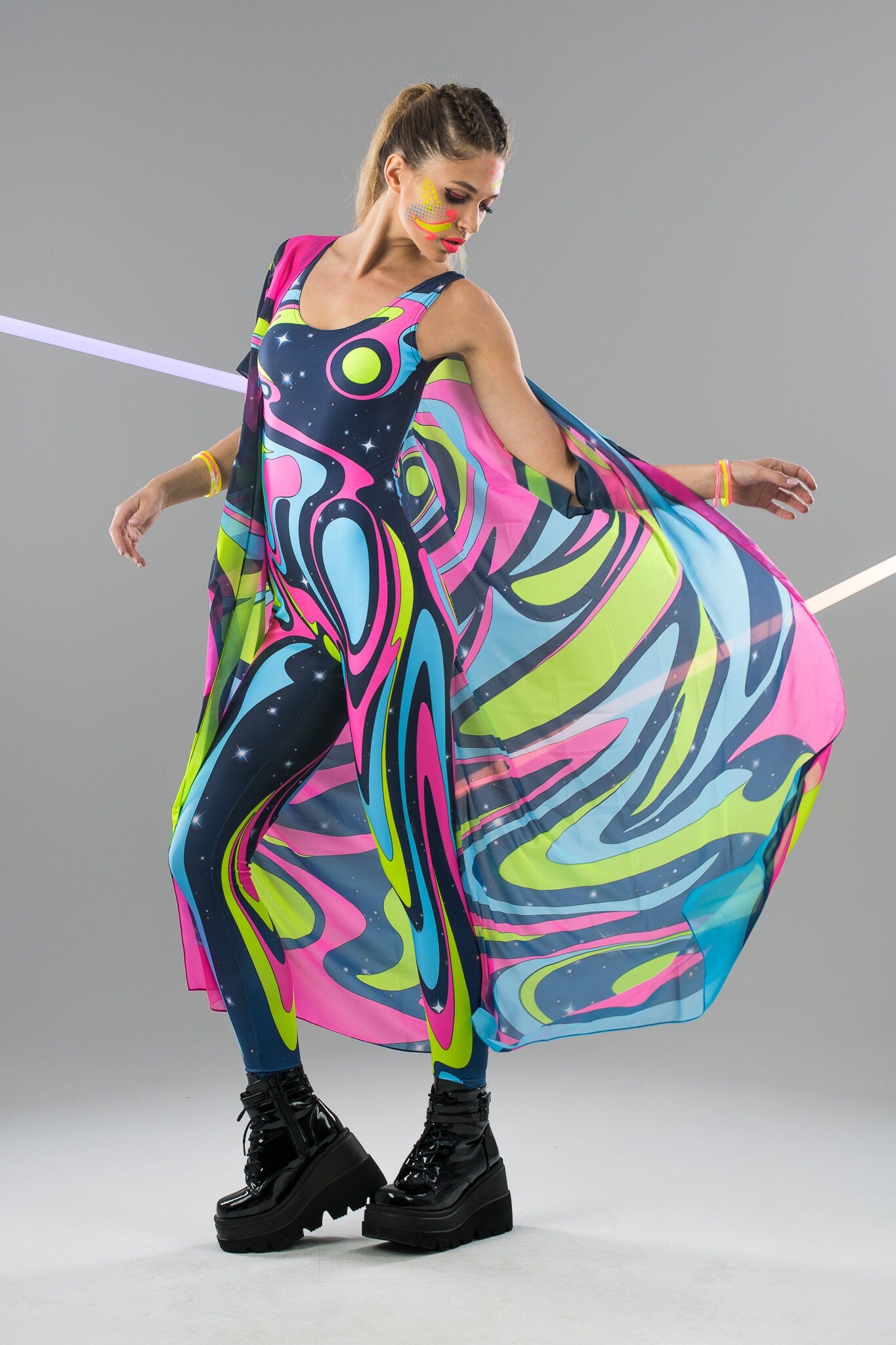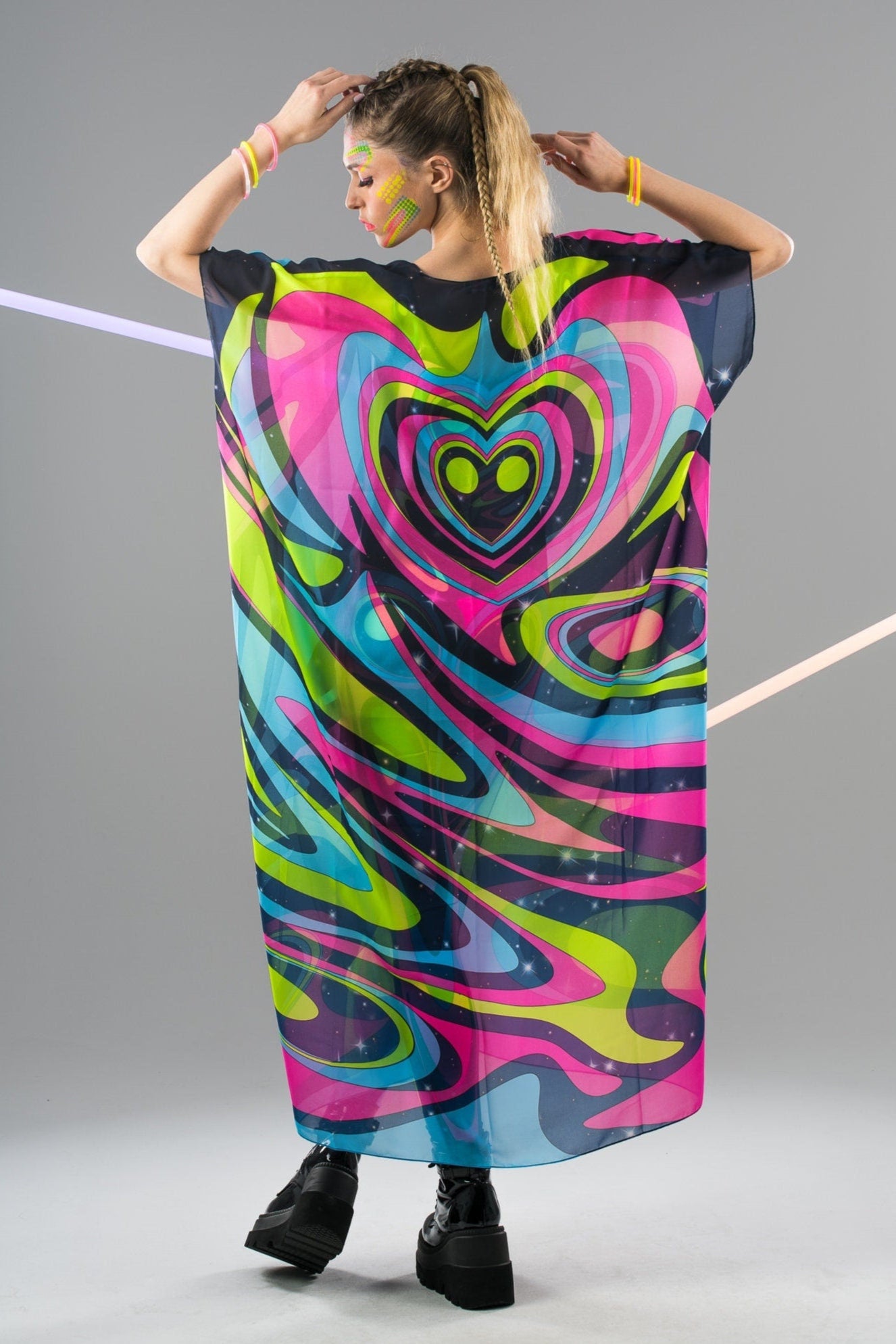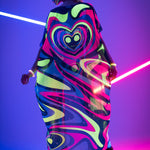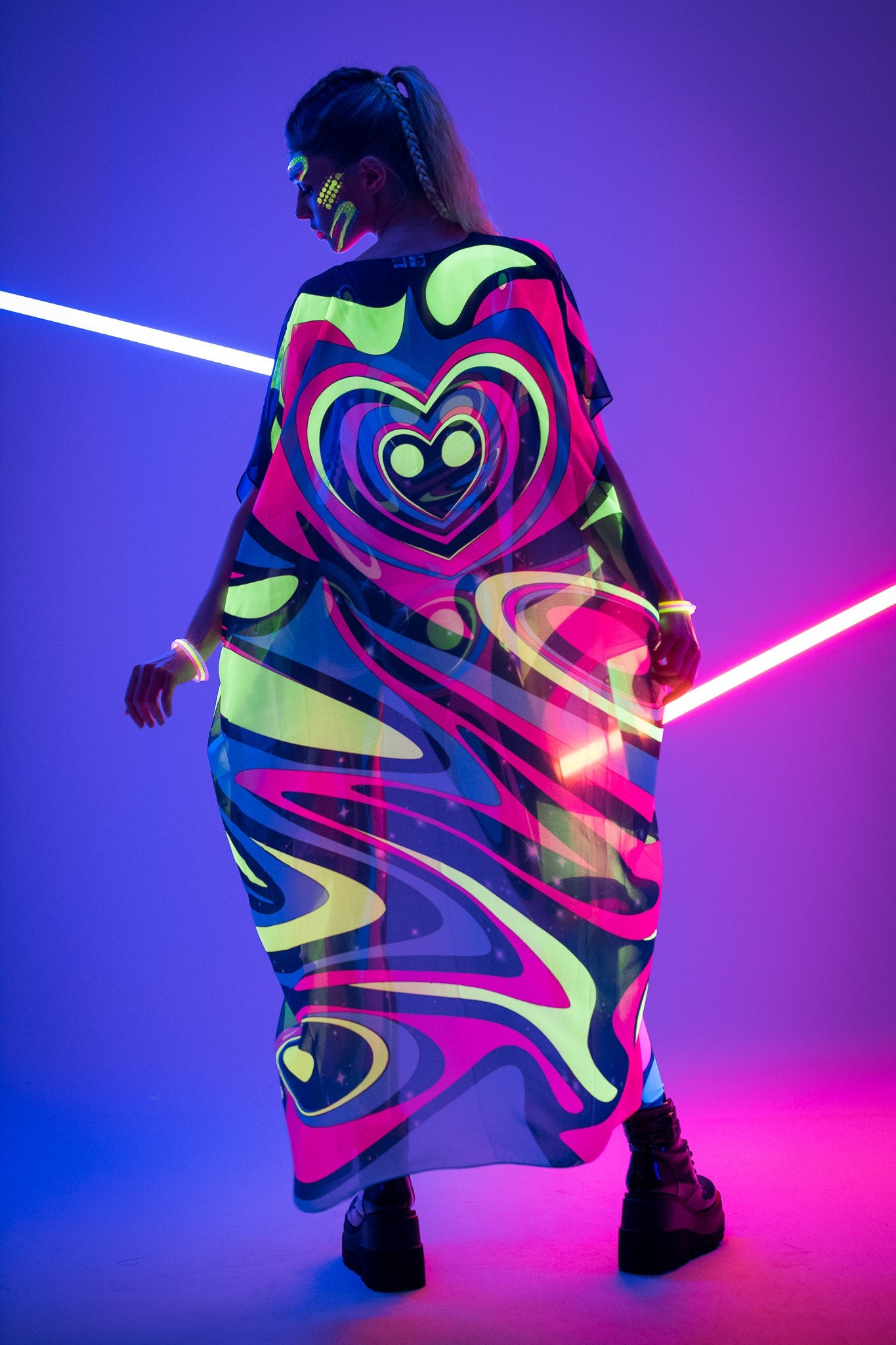 Light, flowy, and impossible to ignore – this UV-reactive kimono is your go-to for bold, glowing looks that stand out in any crowd. Crafted from ultra-soft chiffon and finished with a vivid fluorescent print, it's the perfect layering piece for parties, festivals, or performances.