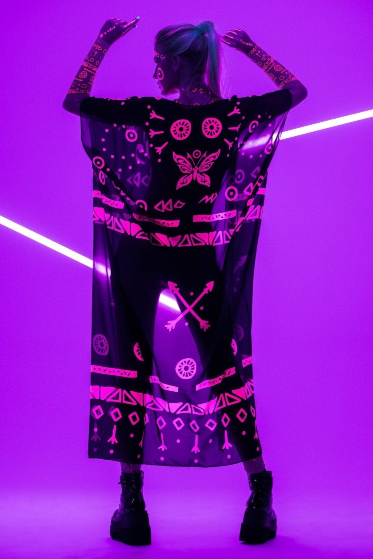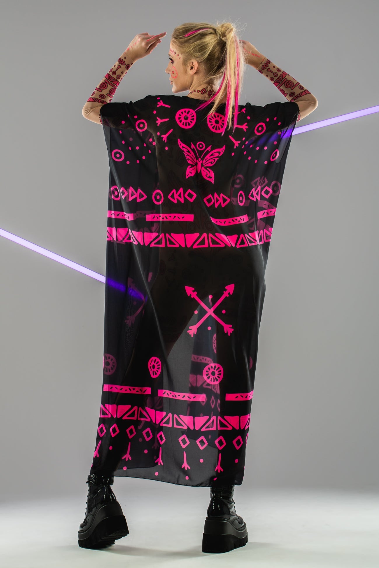 PINK TRIBAL Sheer Printed Kimono - UV Reactive