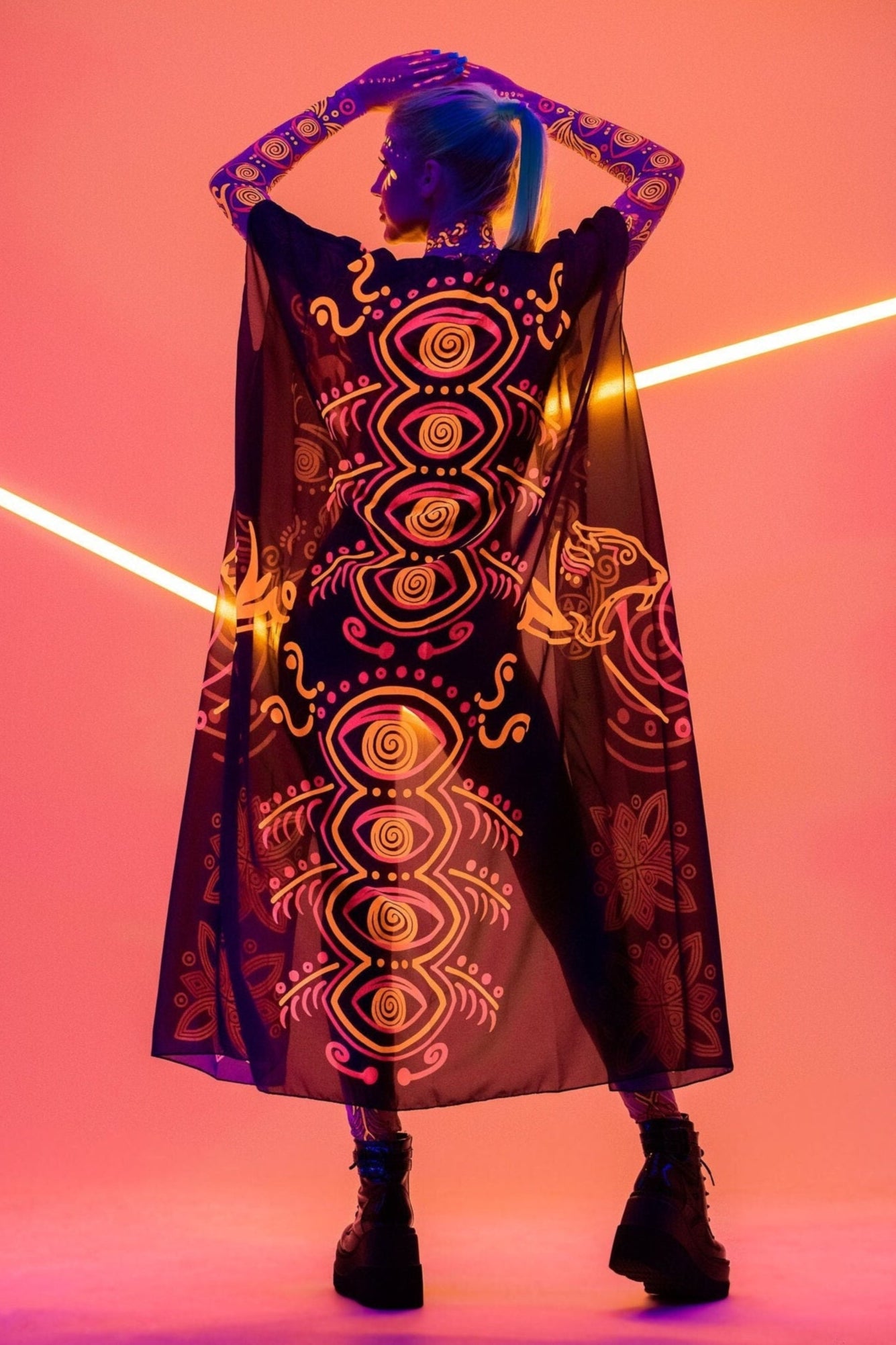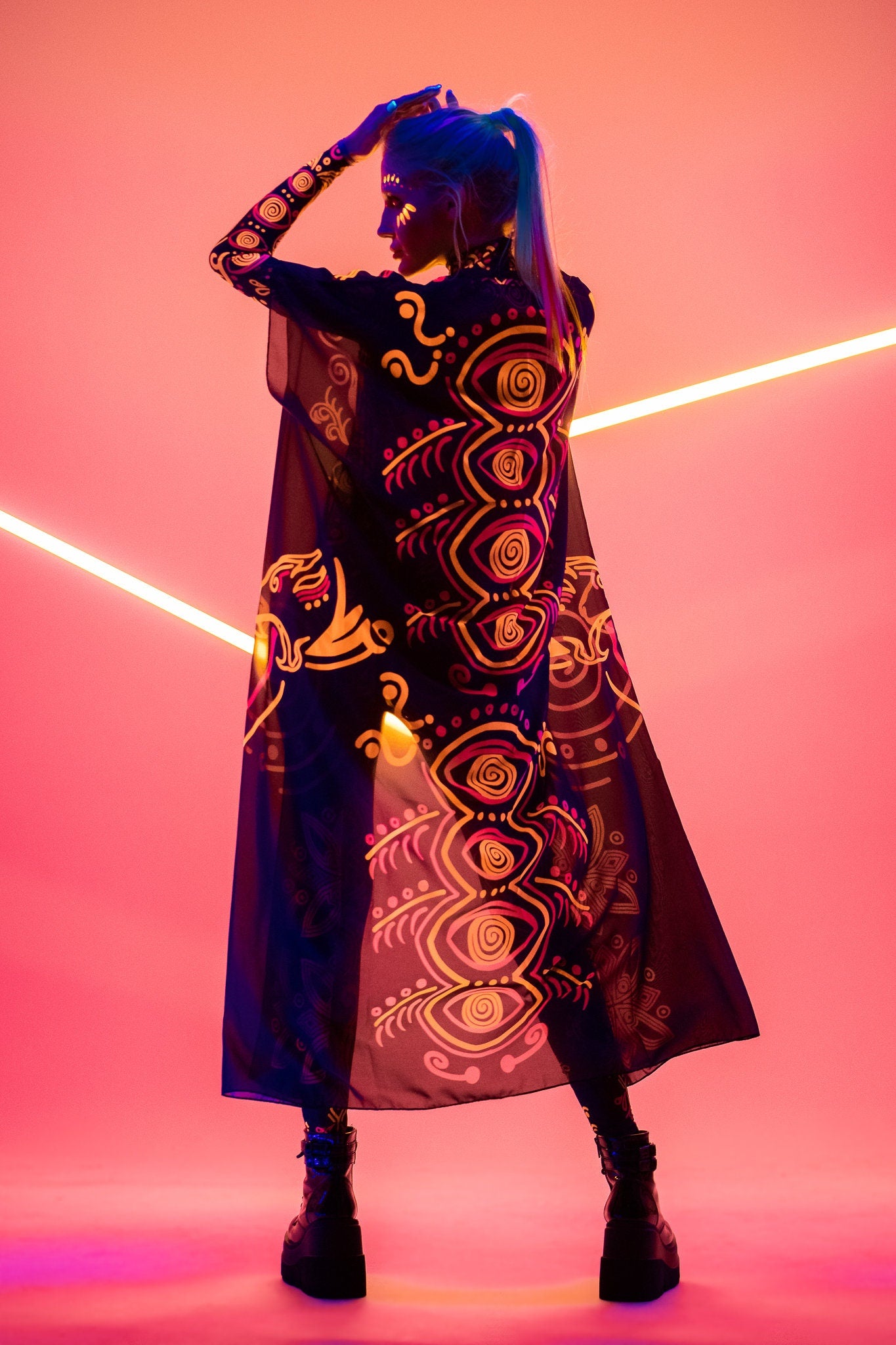 🌟 Hypnotic Glow – UV Reactive Kimono 🌟