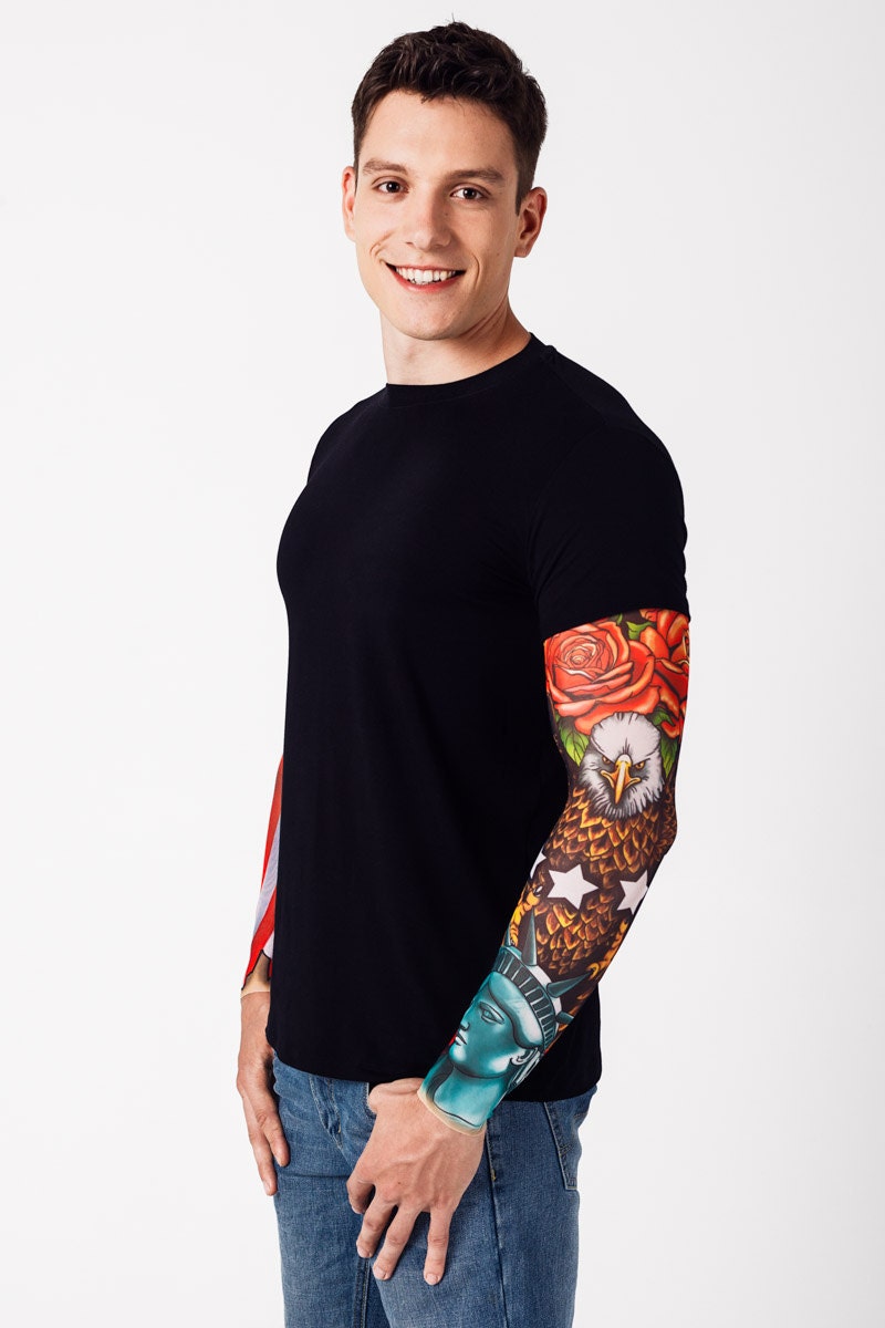 Love the inked look but not the lifetime commitment? This tee brings bold, tattoo-inspired style with a patriotic twist. Featuring iconic American symbols and flag, it’s made for those who wear their pride loud and proud. Edgy, fearless, and impossible to ignore.⚡