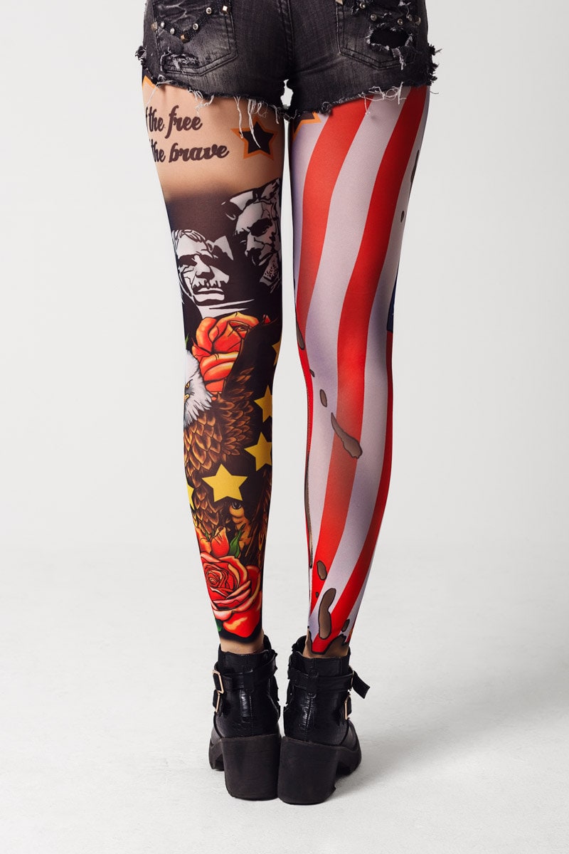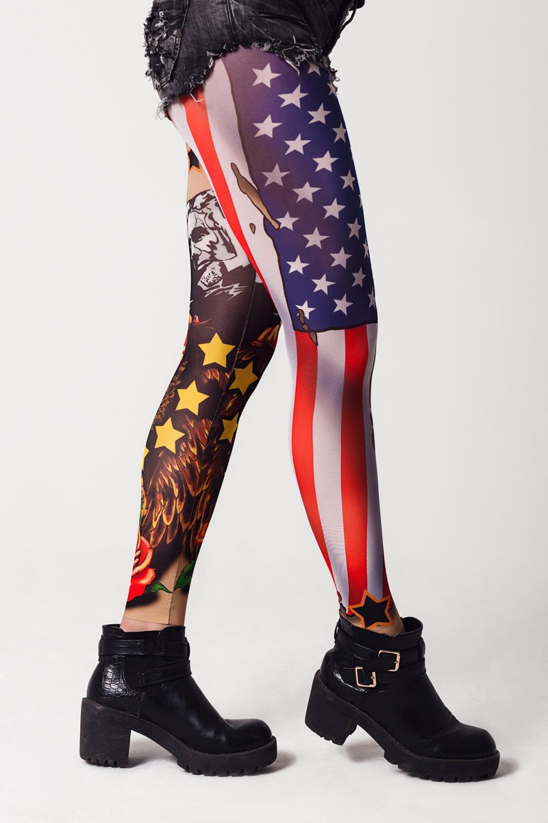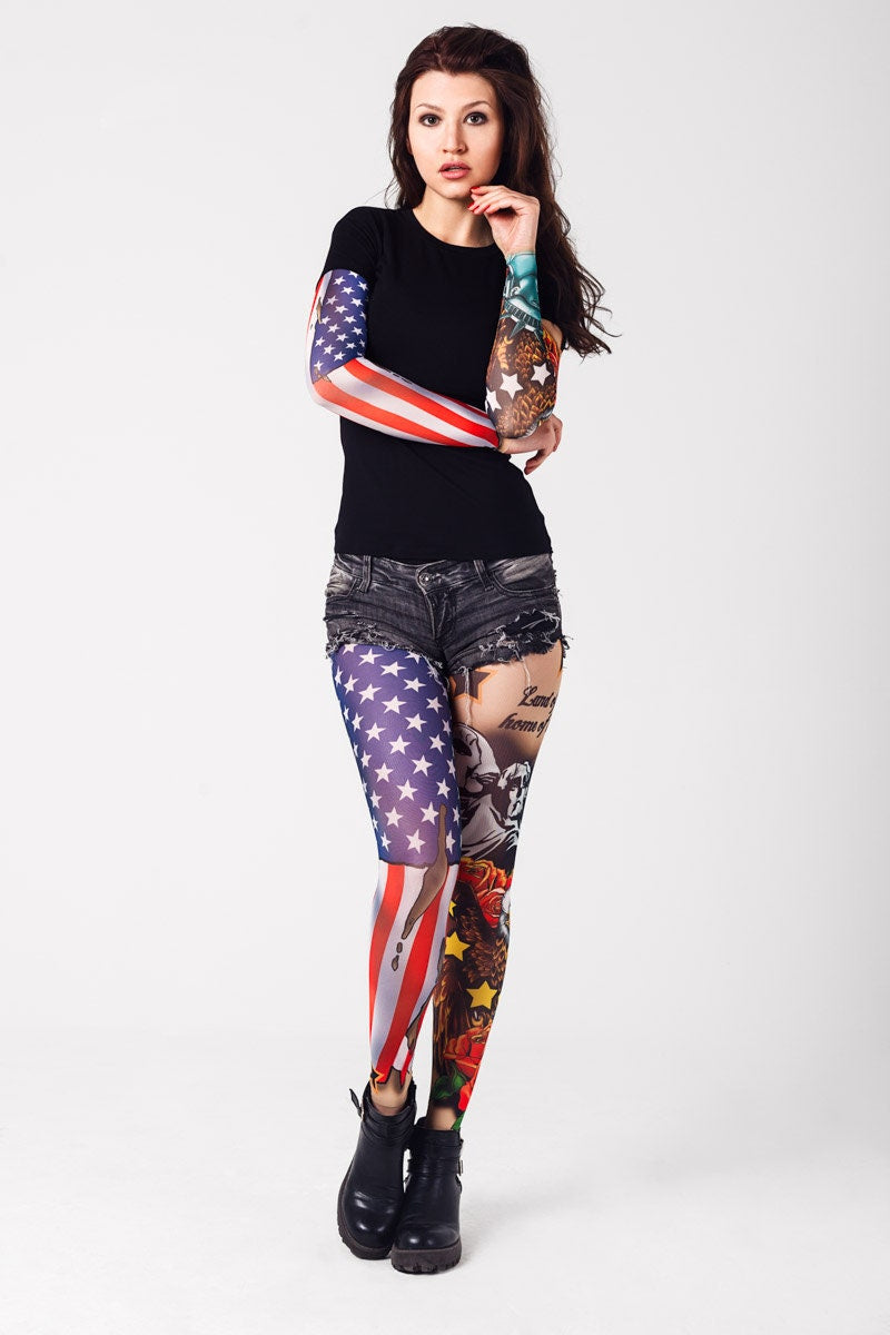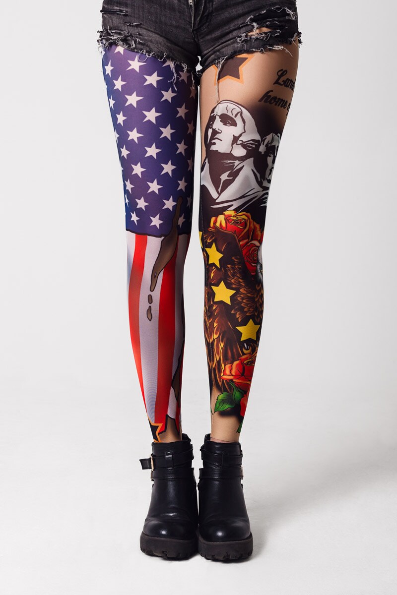 ✔️ Mix and match – pair the leggings with a tattoo-style T-shirt for an even more spectacular patriotic effect.