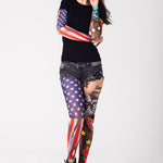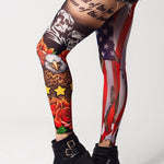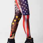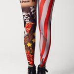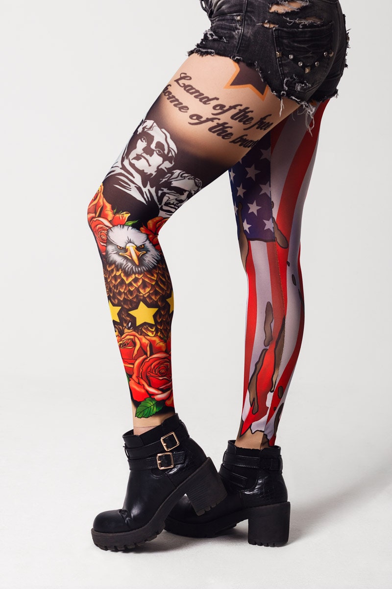These bold leggings fuse tattoo-style art with iconic American symbols — stars, stripes, and freedom-fueled energy. No needles, no commitment — just pure attitude. ✨