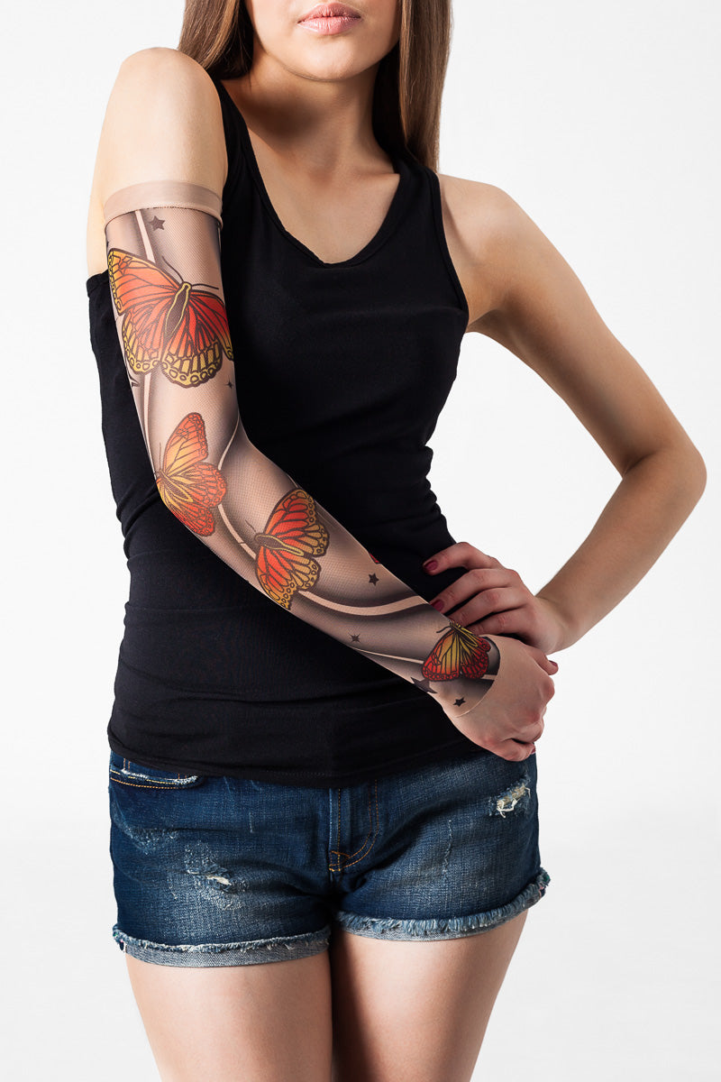 YELLOW BUTTERFLIES Mesh Tattoo Sleeve