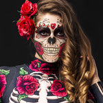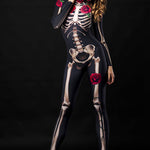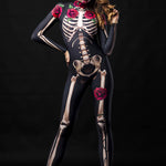 Want to stand out at your Halloween party? Our catsuit, featuring a beige skeleton print with red roses, is the perfect choice - combining a unique design with unbeatable comfort. 🎃💖