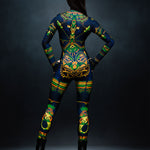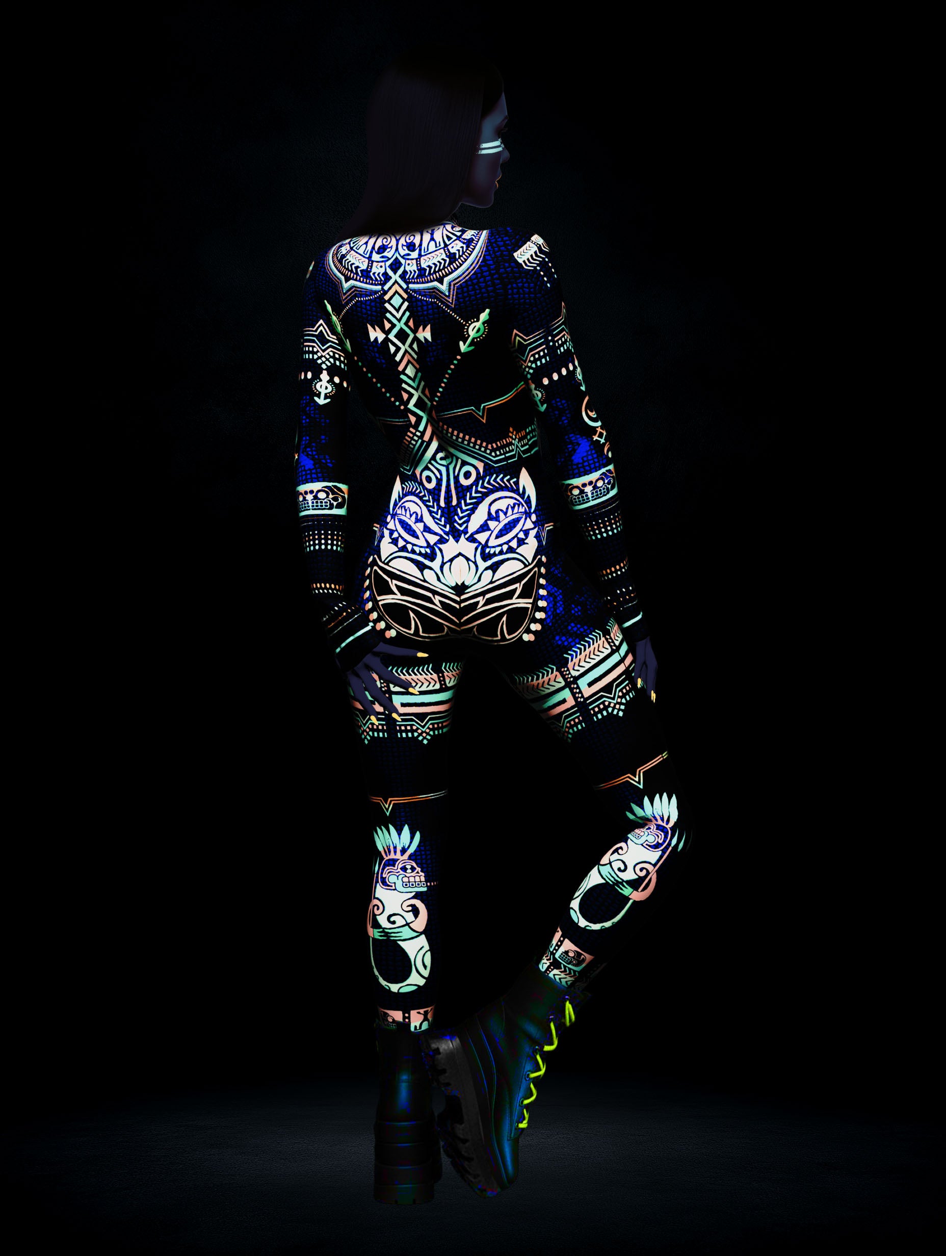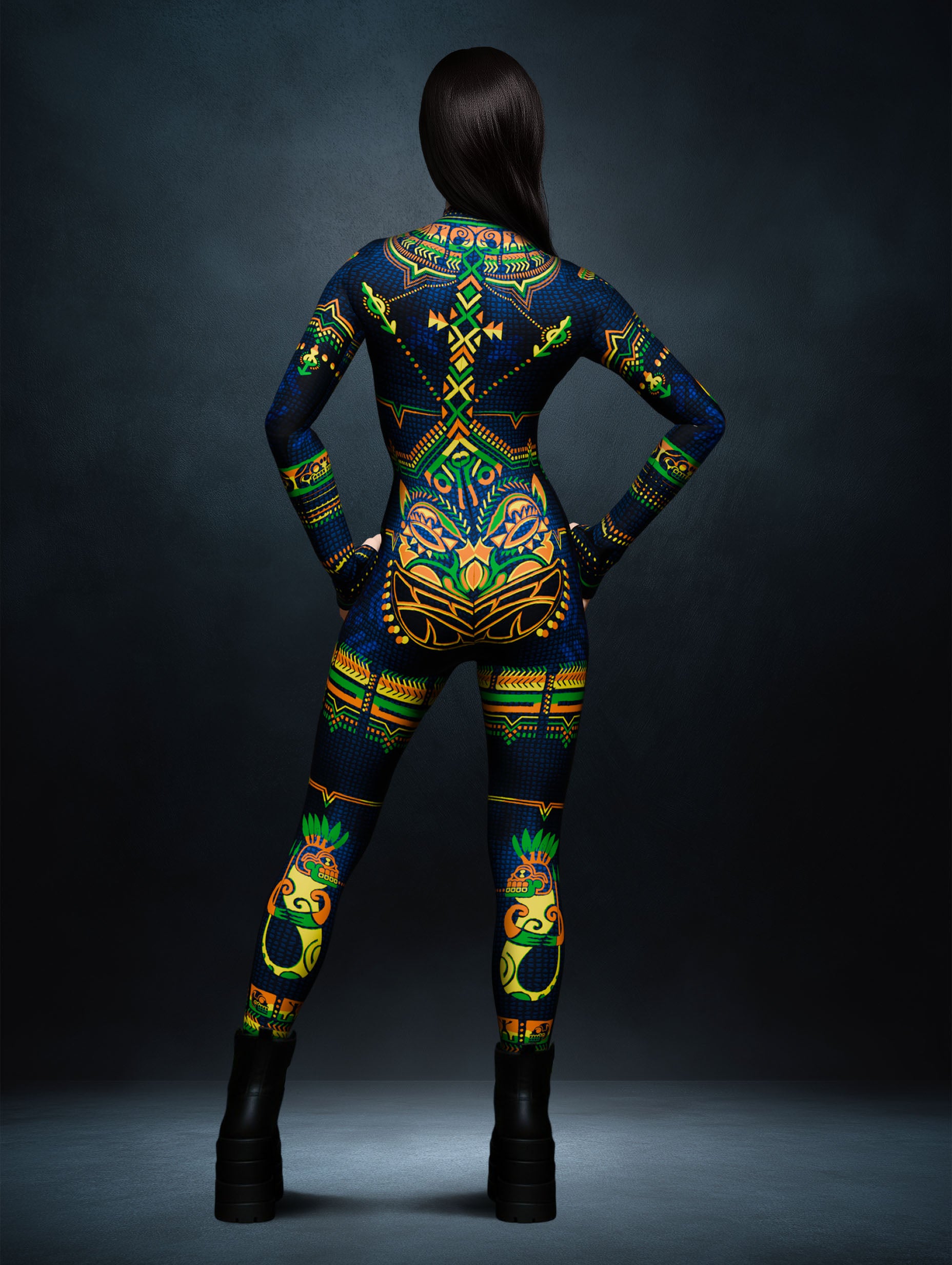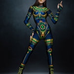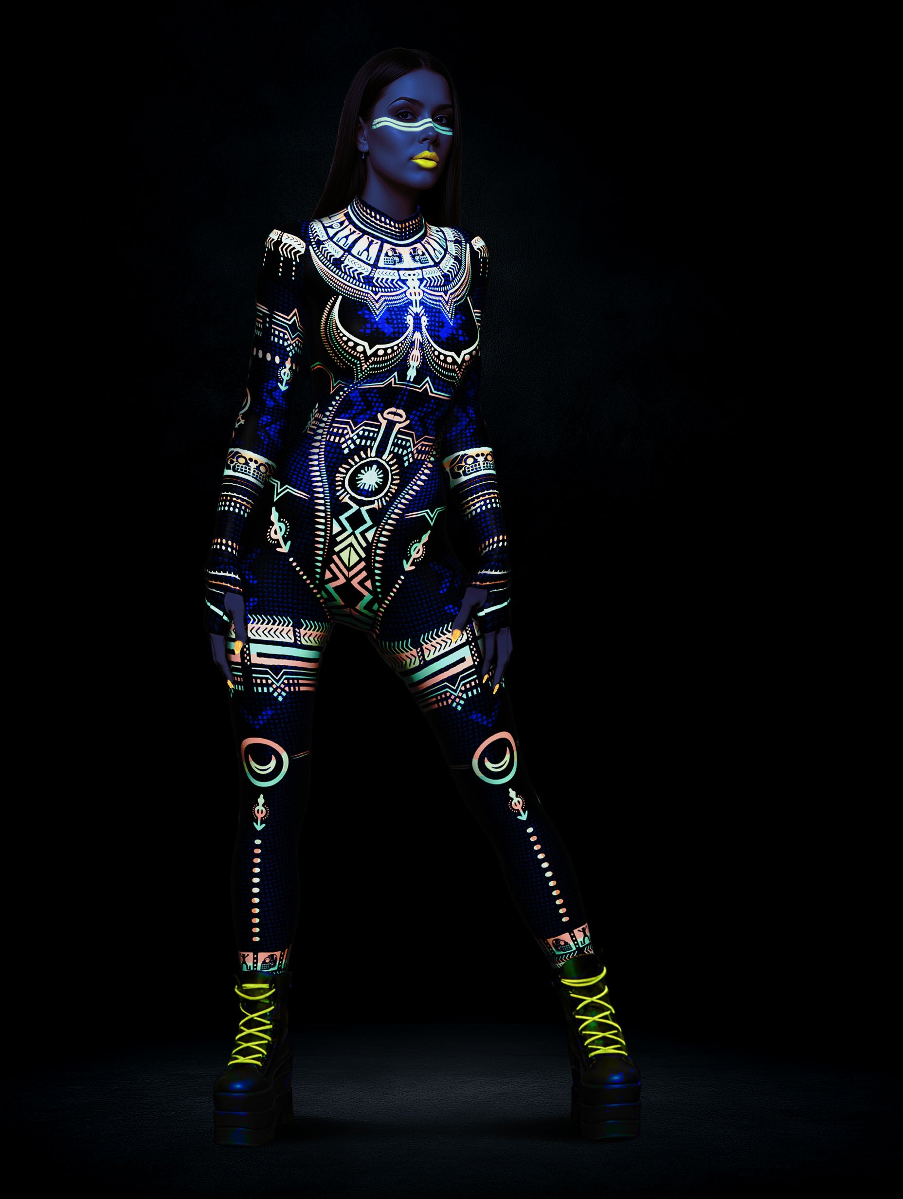 AZTEC TRIBAL UV Reactive Catsuit - Full Body Festival Costume for Women