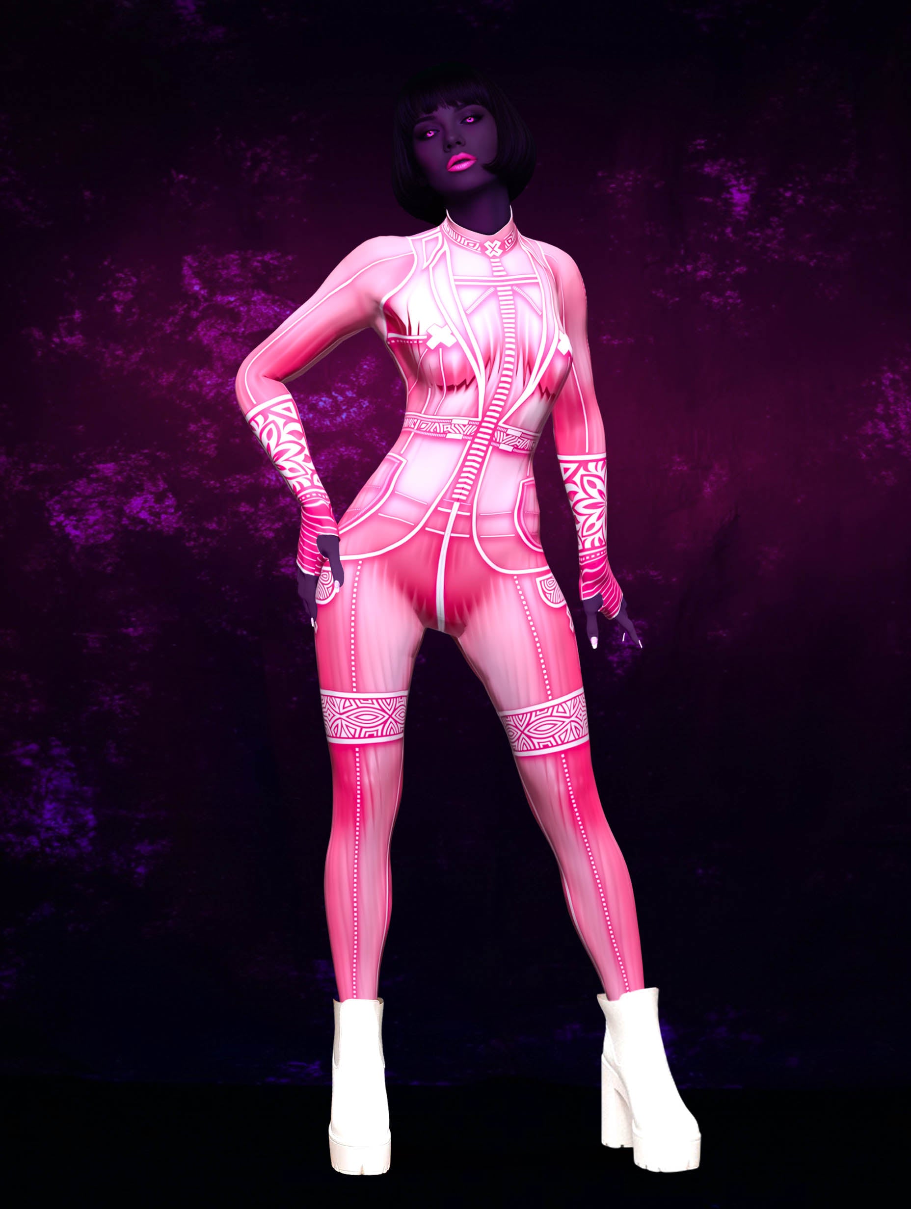 Pink POWER SUIT Full Body Costume for Women - UV Reactive