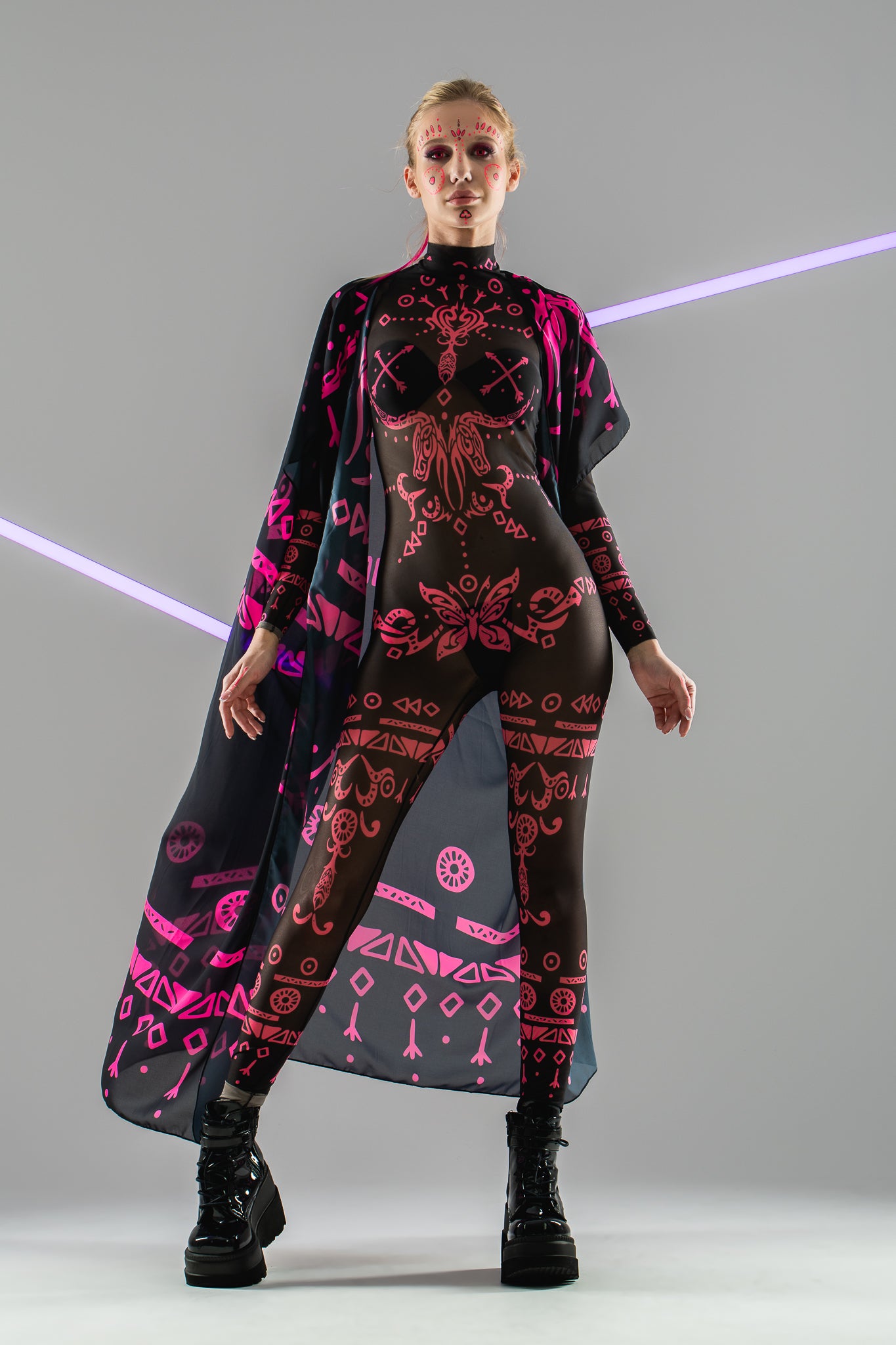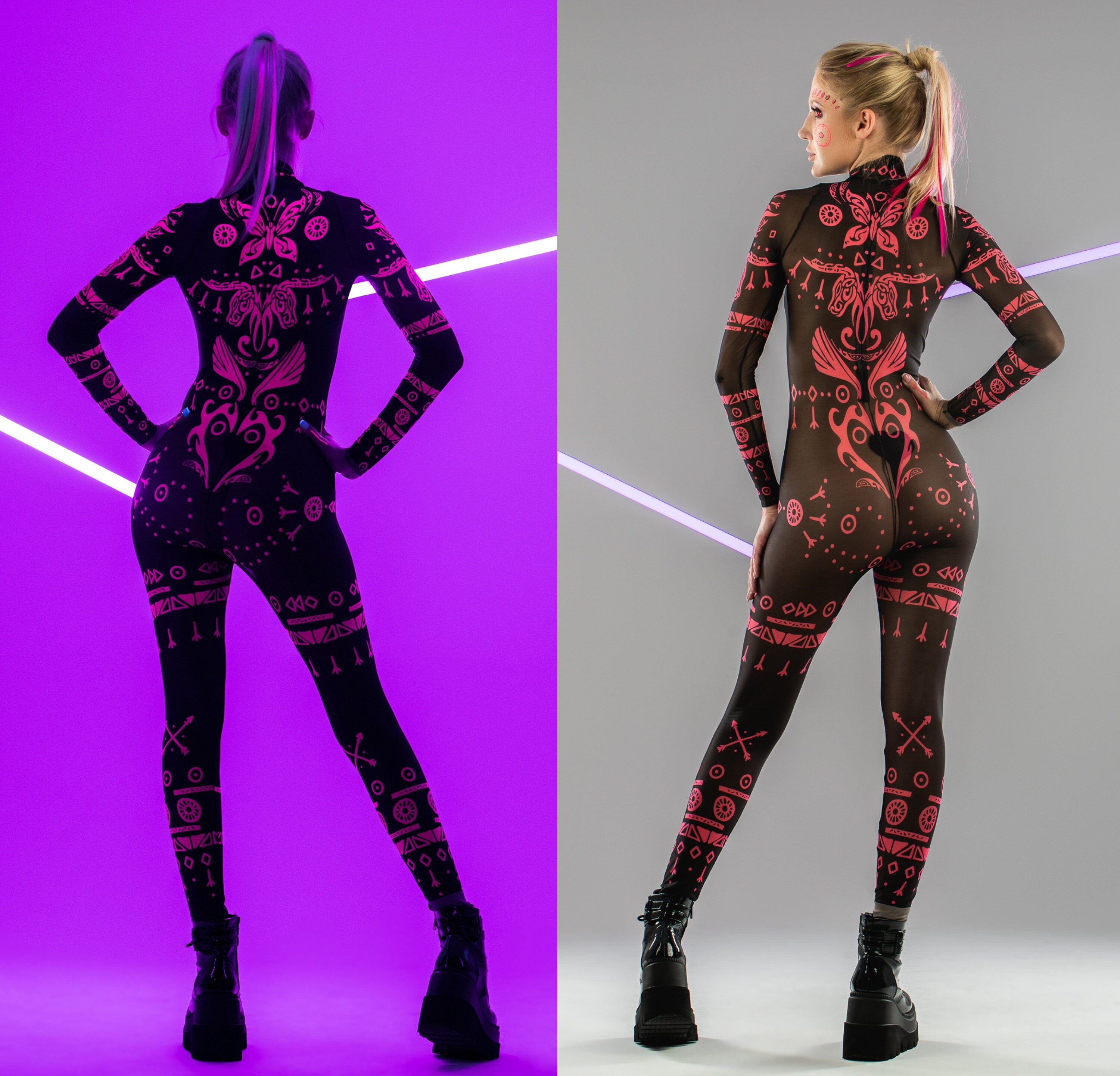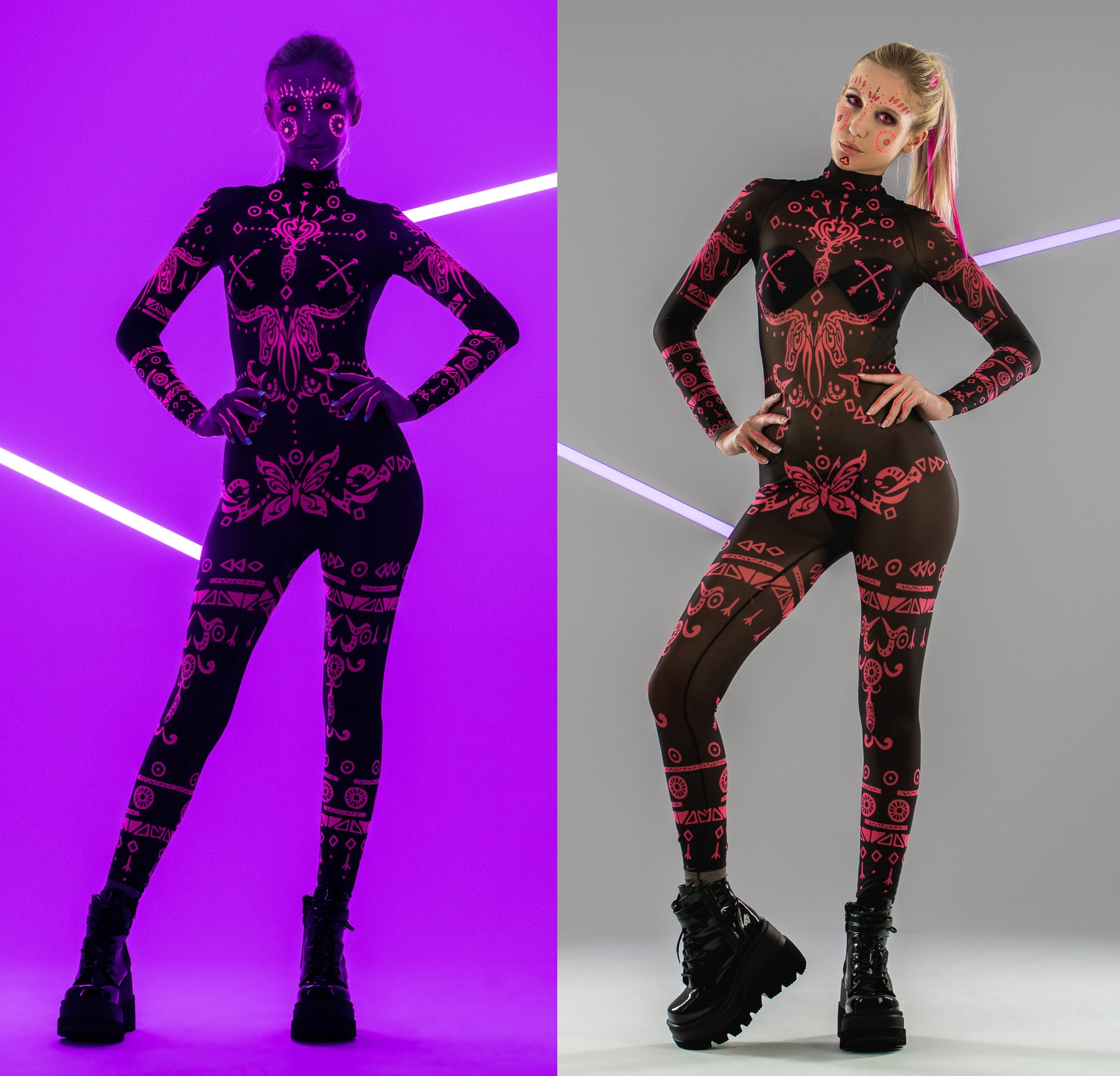 PINK TRIBAL Mesh Costume for Women - UV Reactive - Style Solo or Set