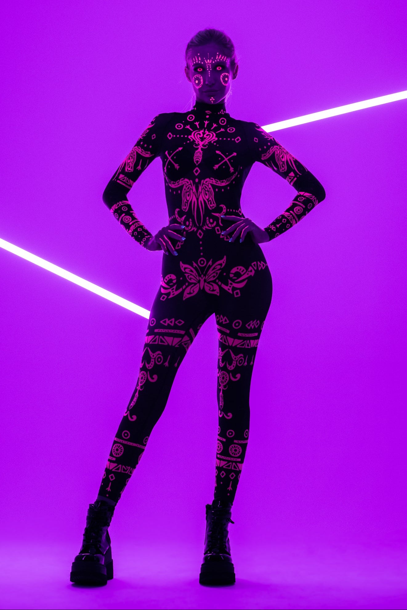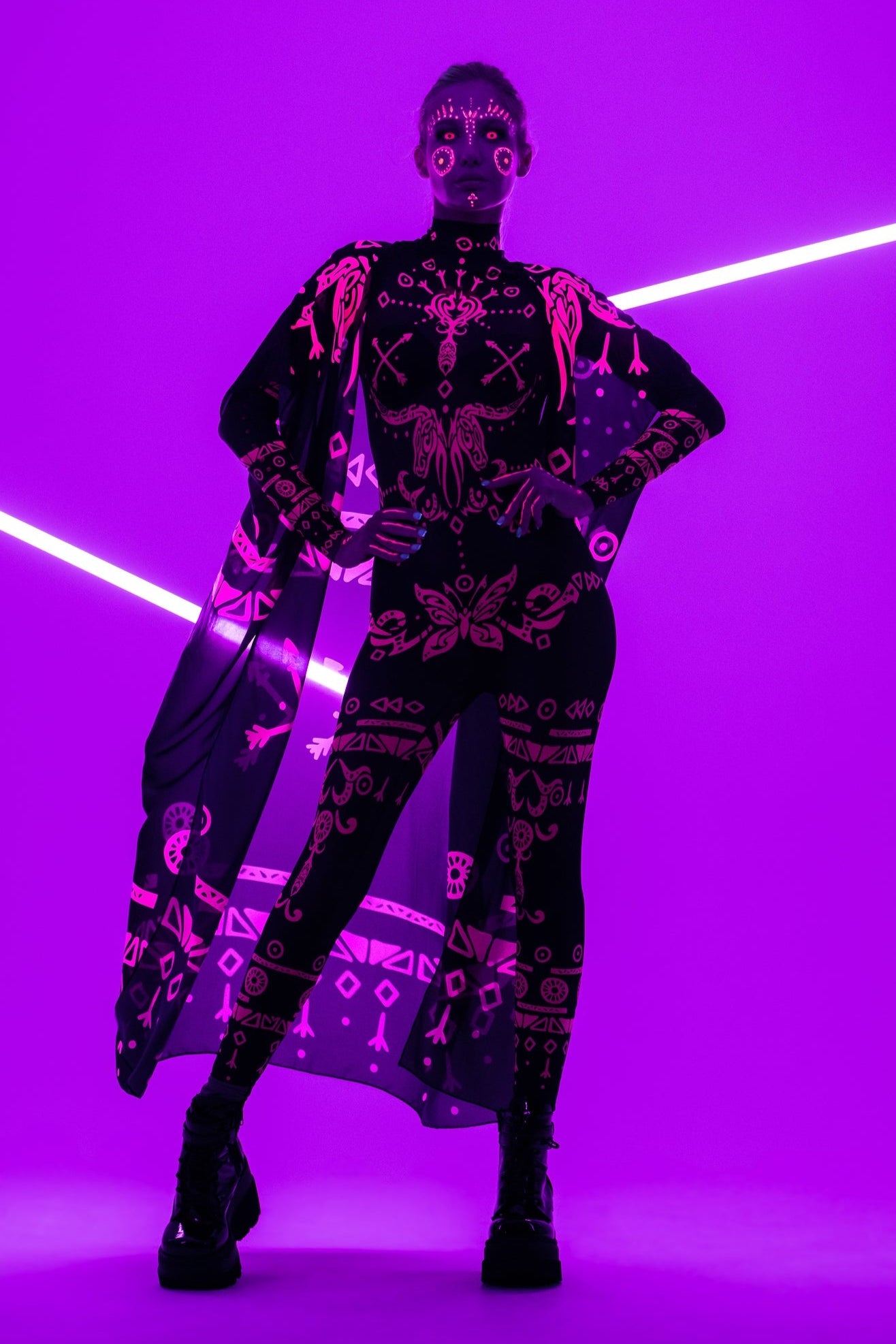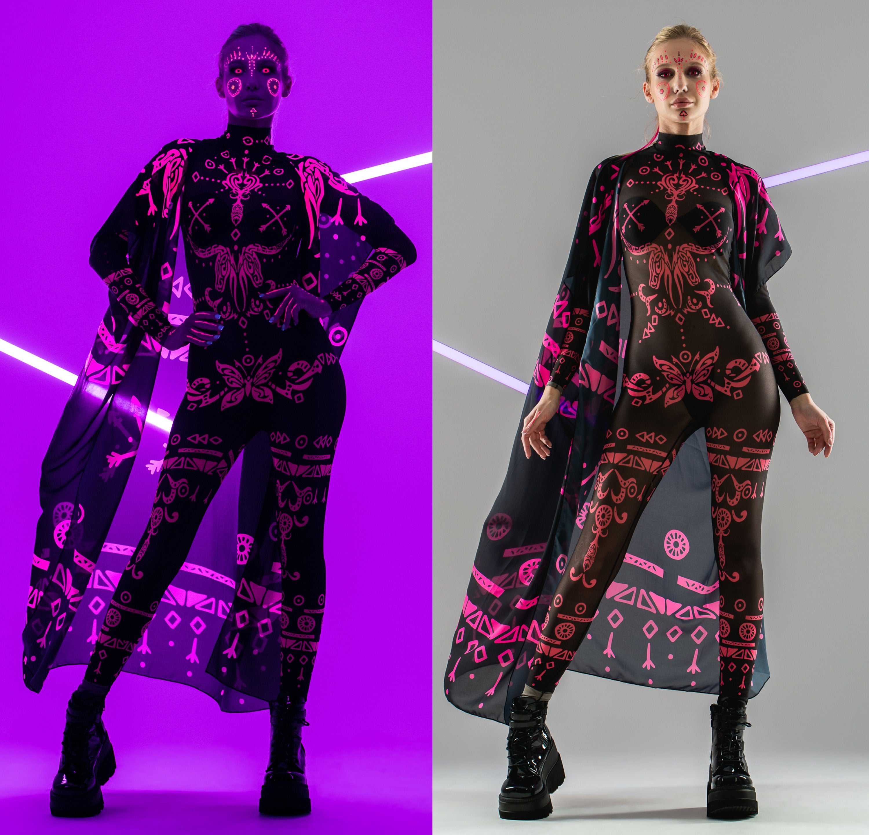 PINK TRIBAL Mesh Costume for Women - UV Reactive - Style Solo or Set