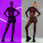 Looking for an outfit that turns heads? Our mesh suit with a fluorescent print is the perfect choice for those who love bold and unique "edgy" styles! ✨