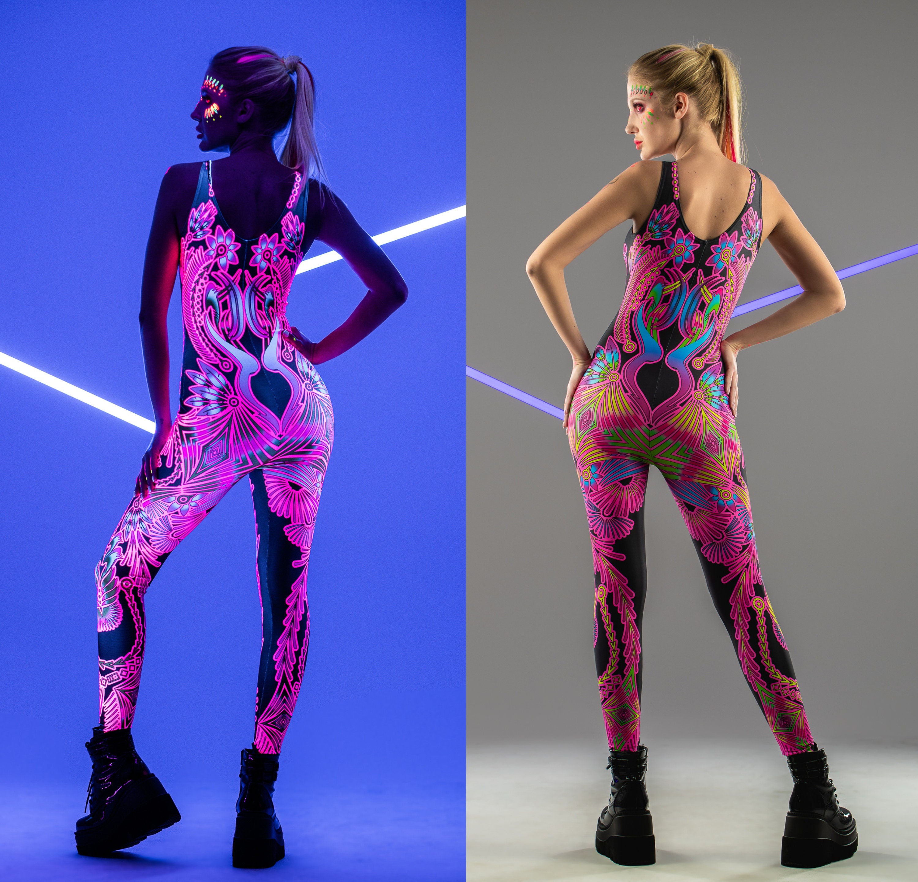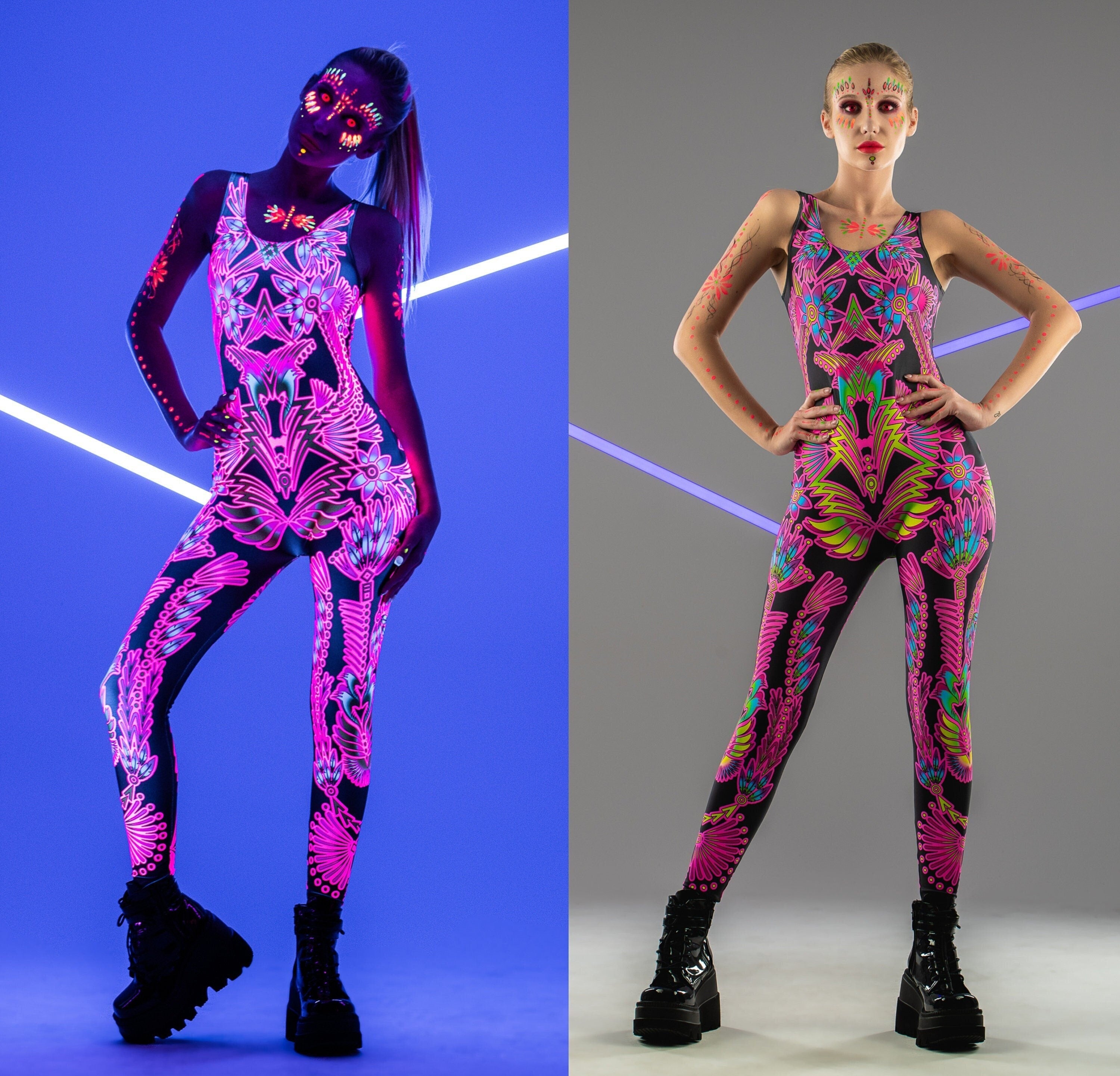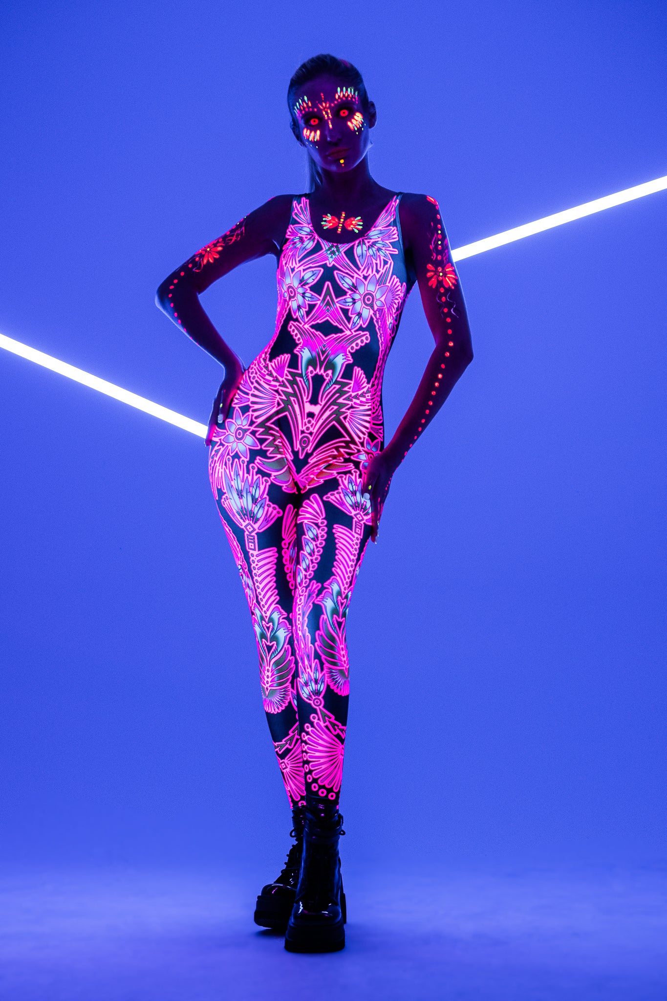 NEON FLOWERS Scoop Neck Jumpsuit - UV Reactive - Style Solo or Set