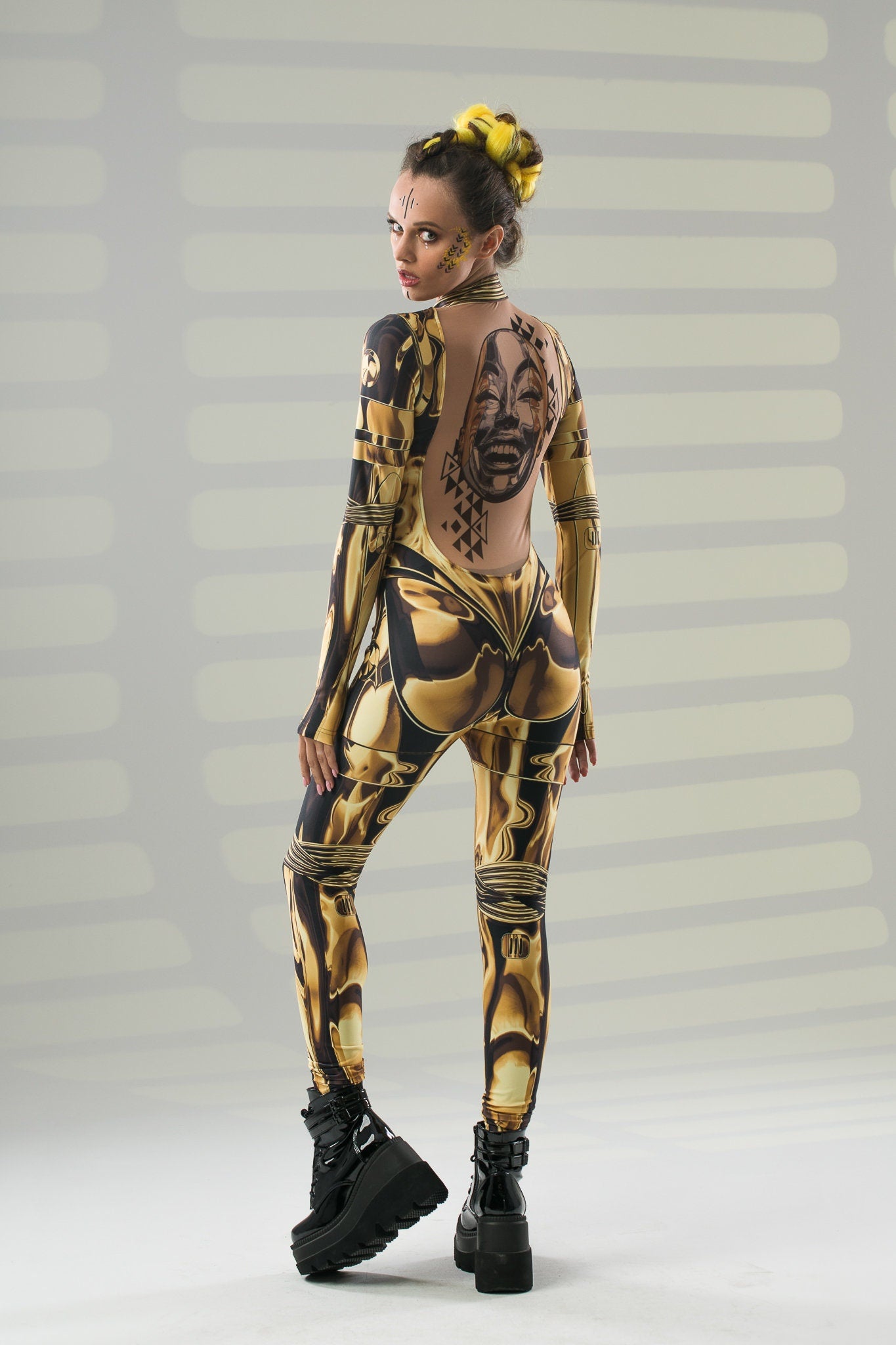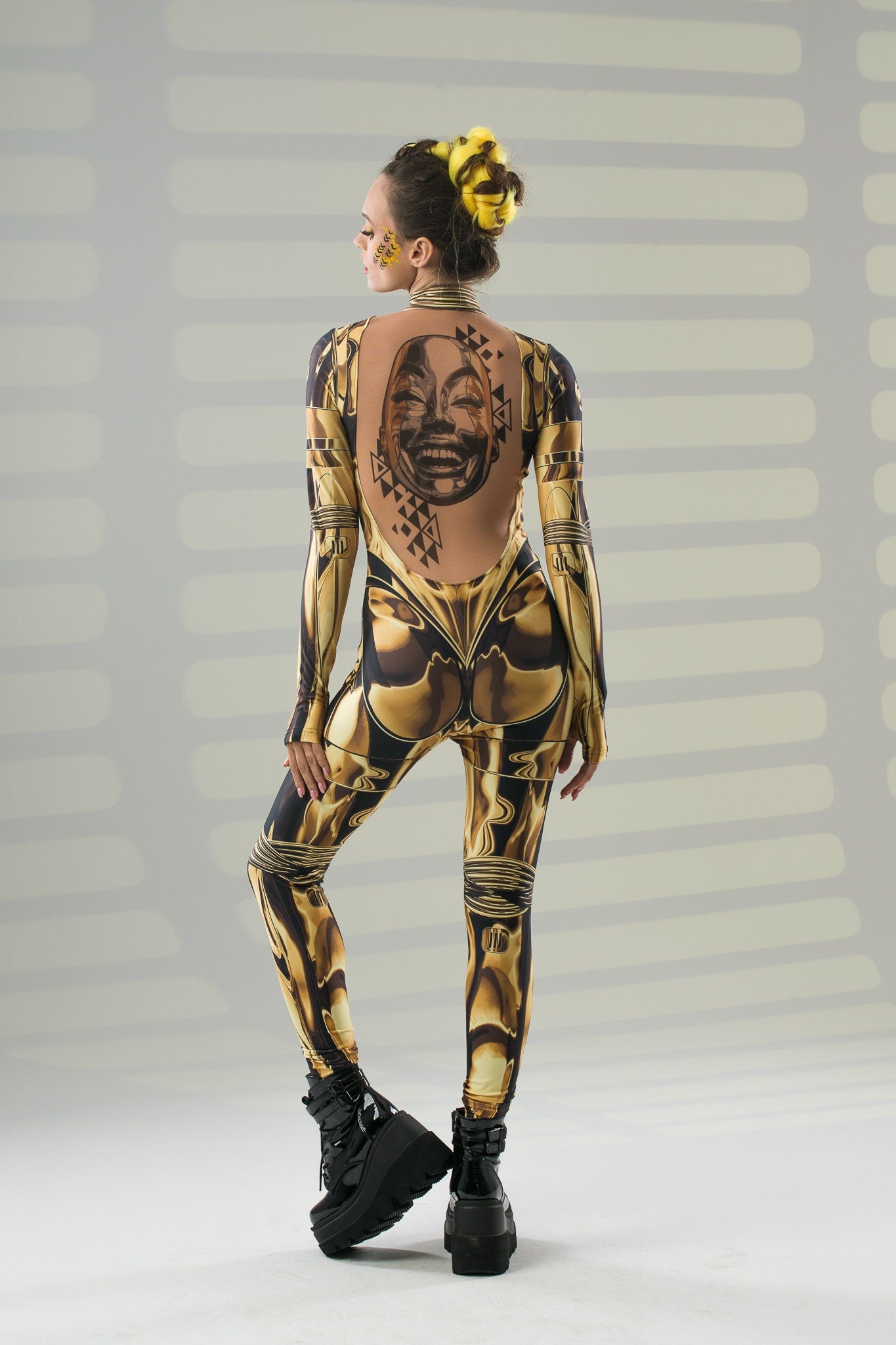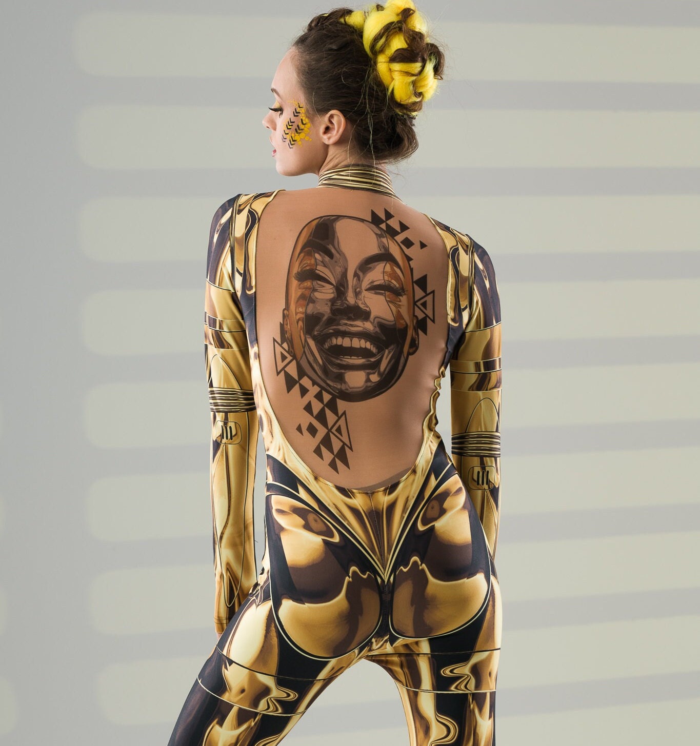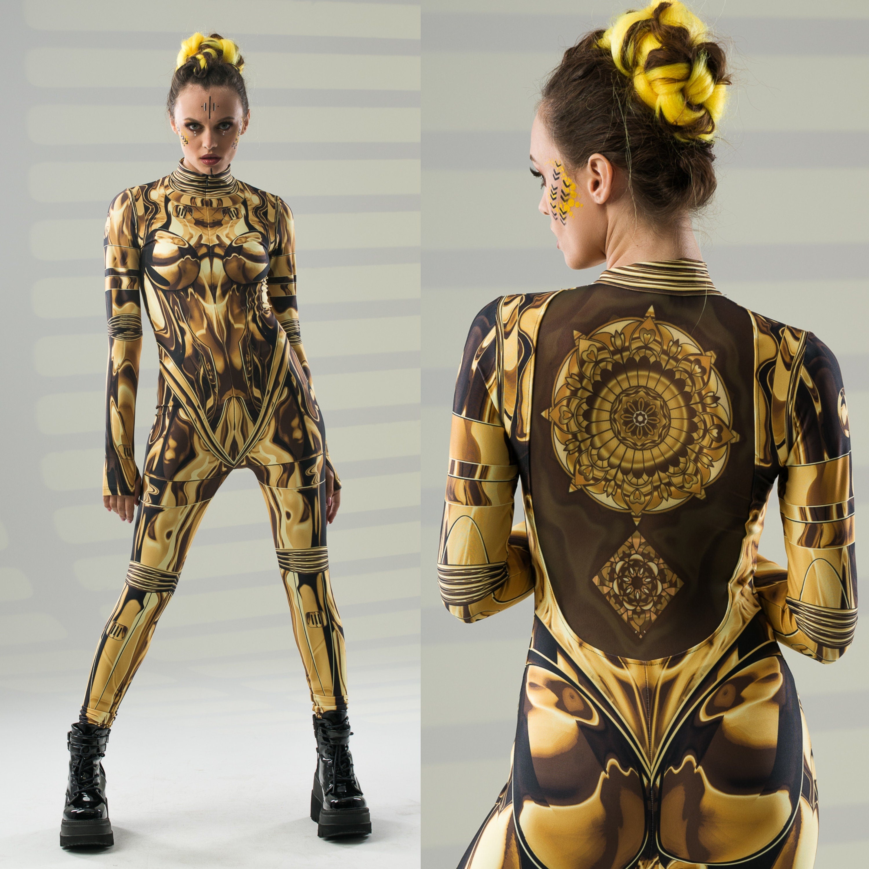GOLD ARMOR Costume for Women - AI face tattoo