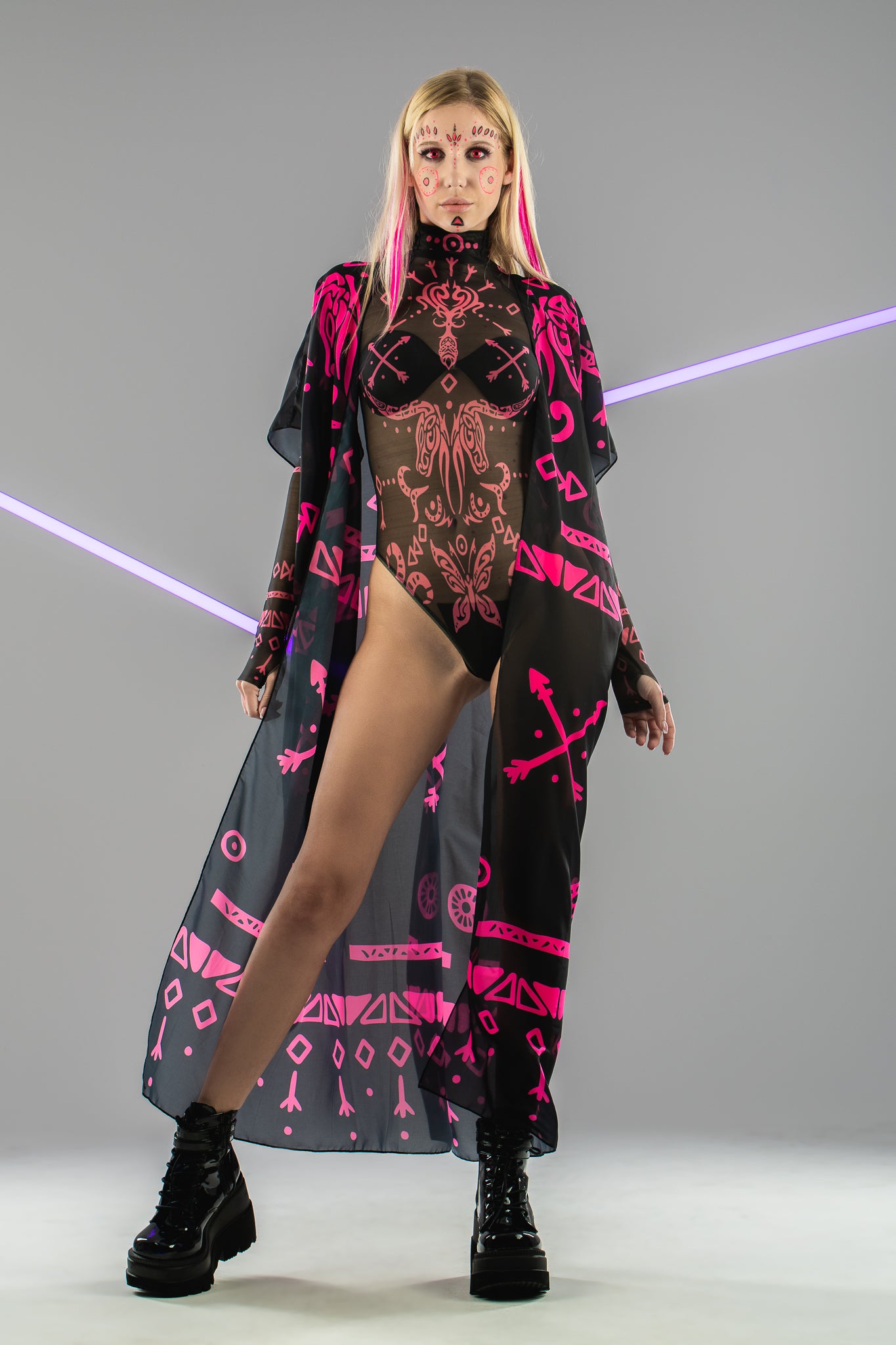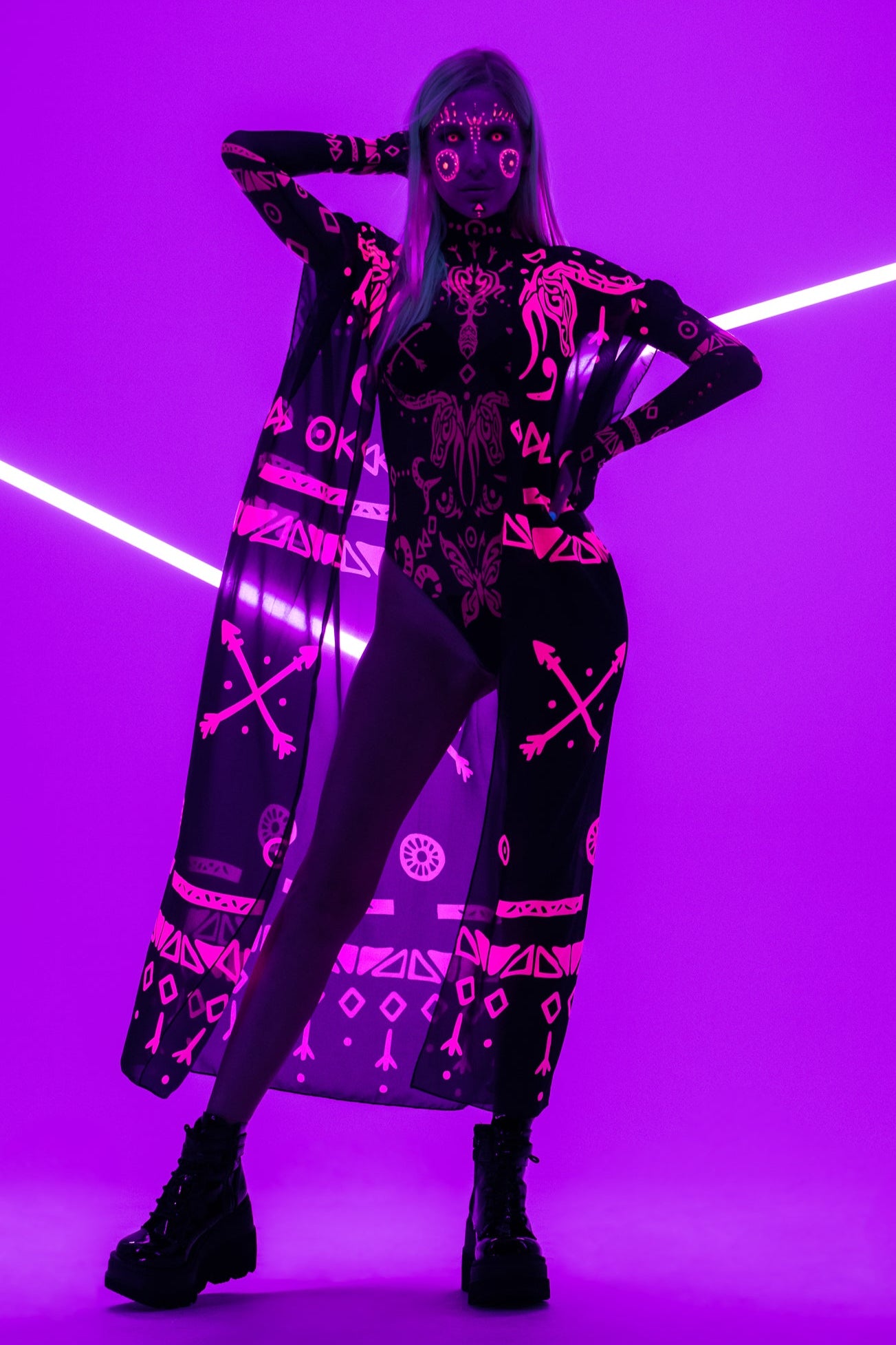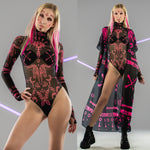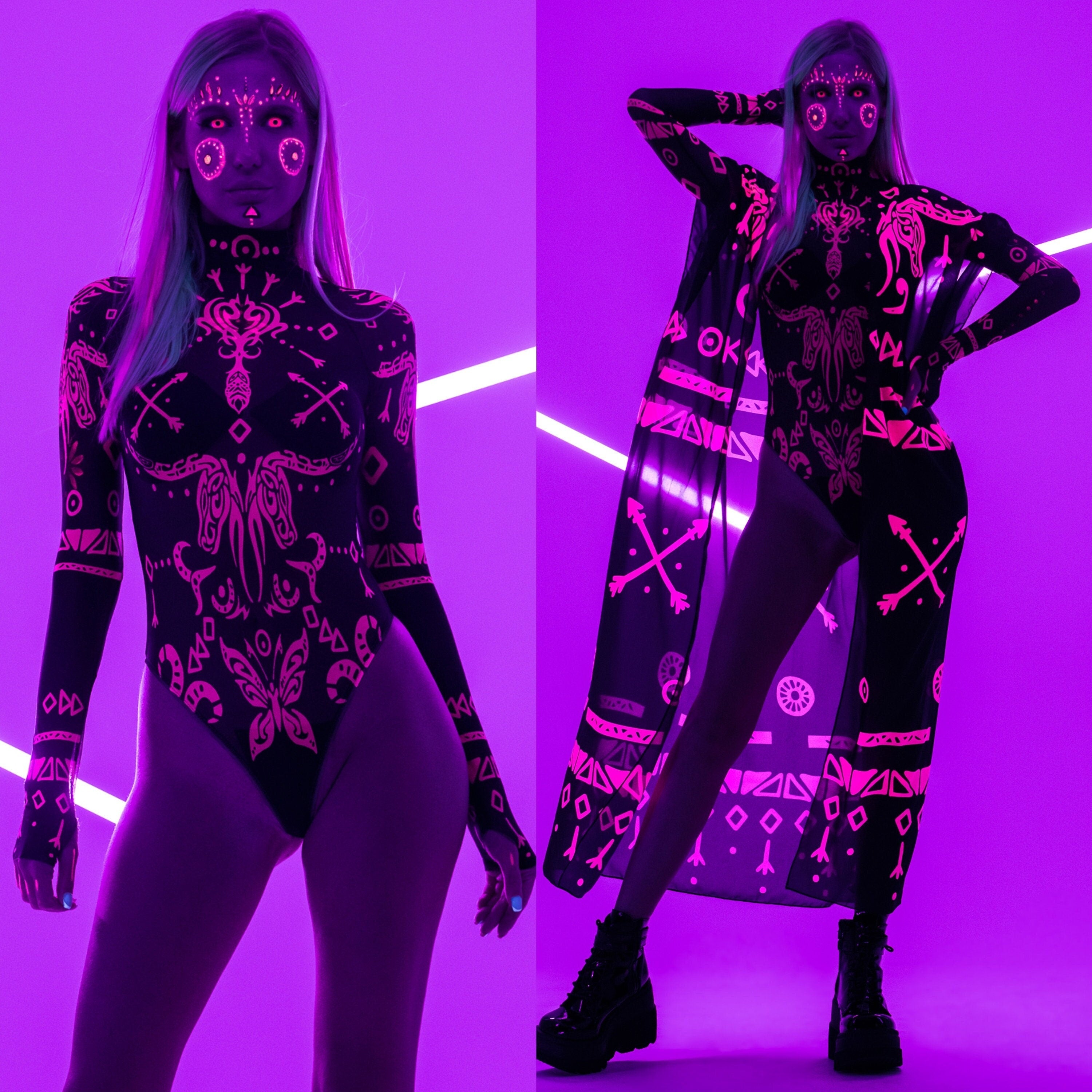 PINK TRIBAL Mesh Bodysuit - UV Reactive - Style Solo or Set