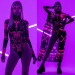 Looking for an outfit that turns heads? Our mesh suit with a fluorescent print is the perfect choice for those who love bold and unique "edgy" styles! ✨
