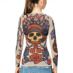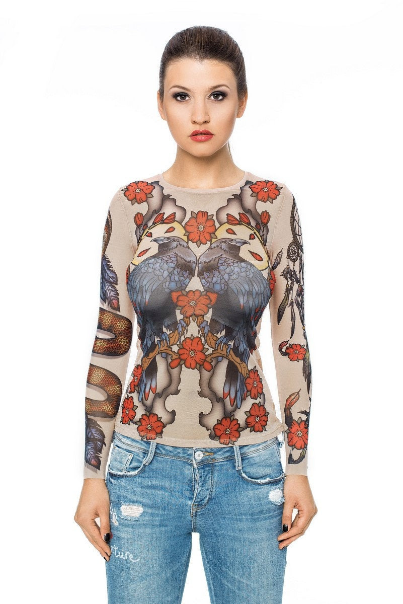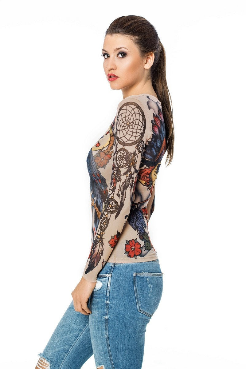 ✔️ Realistic design – skin-toned, elastic mesh hugs your body like a second skin, making the tattoo print look incredibly lifelike. 🎨