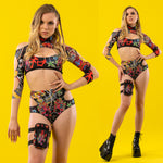 ✔️ Trendy design – the sexy cut-outs, flattering crop top with 3/4 sleeves, and high-rise mini shorts accentuate your silhouette, giving you confidence and allure! 💃