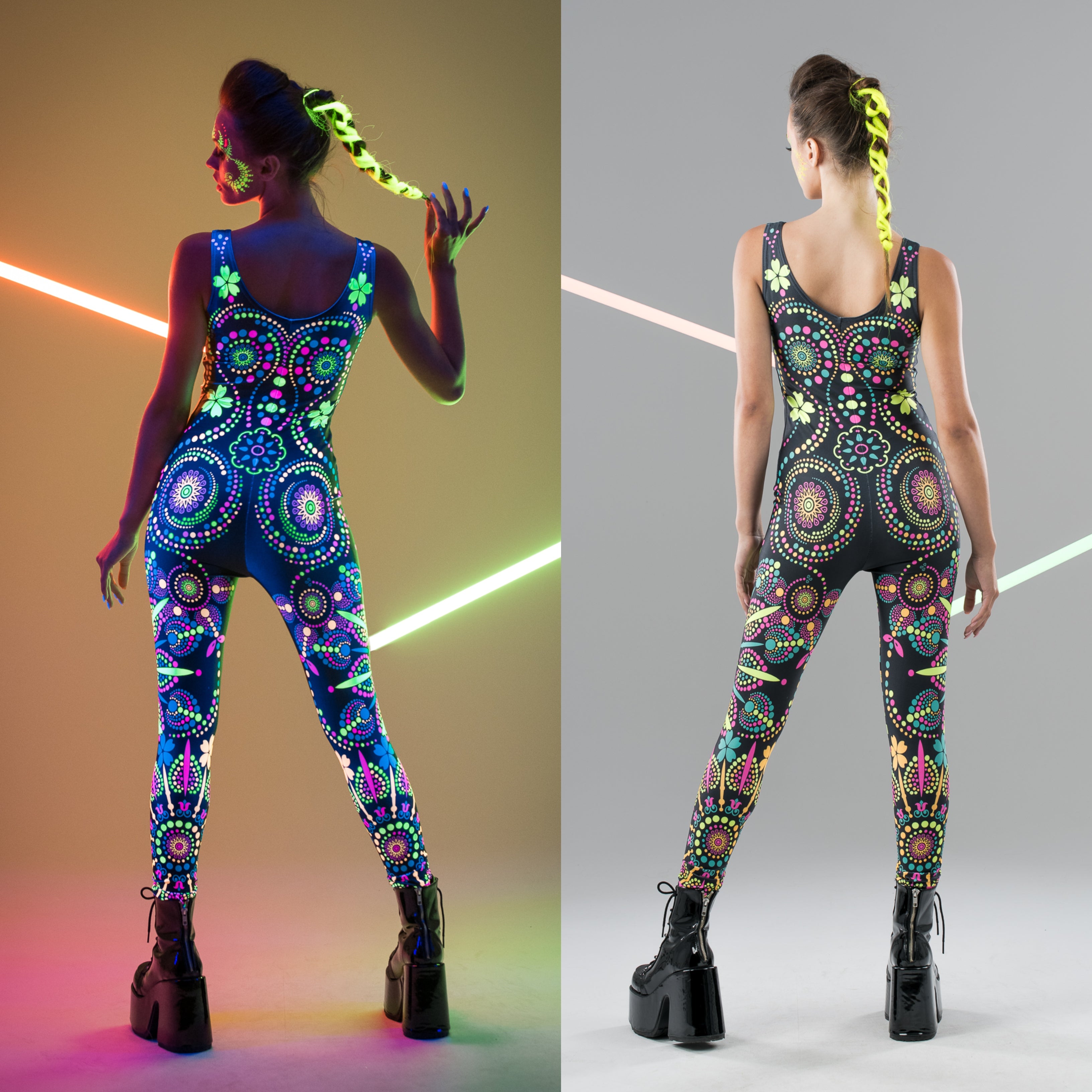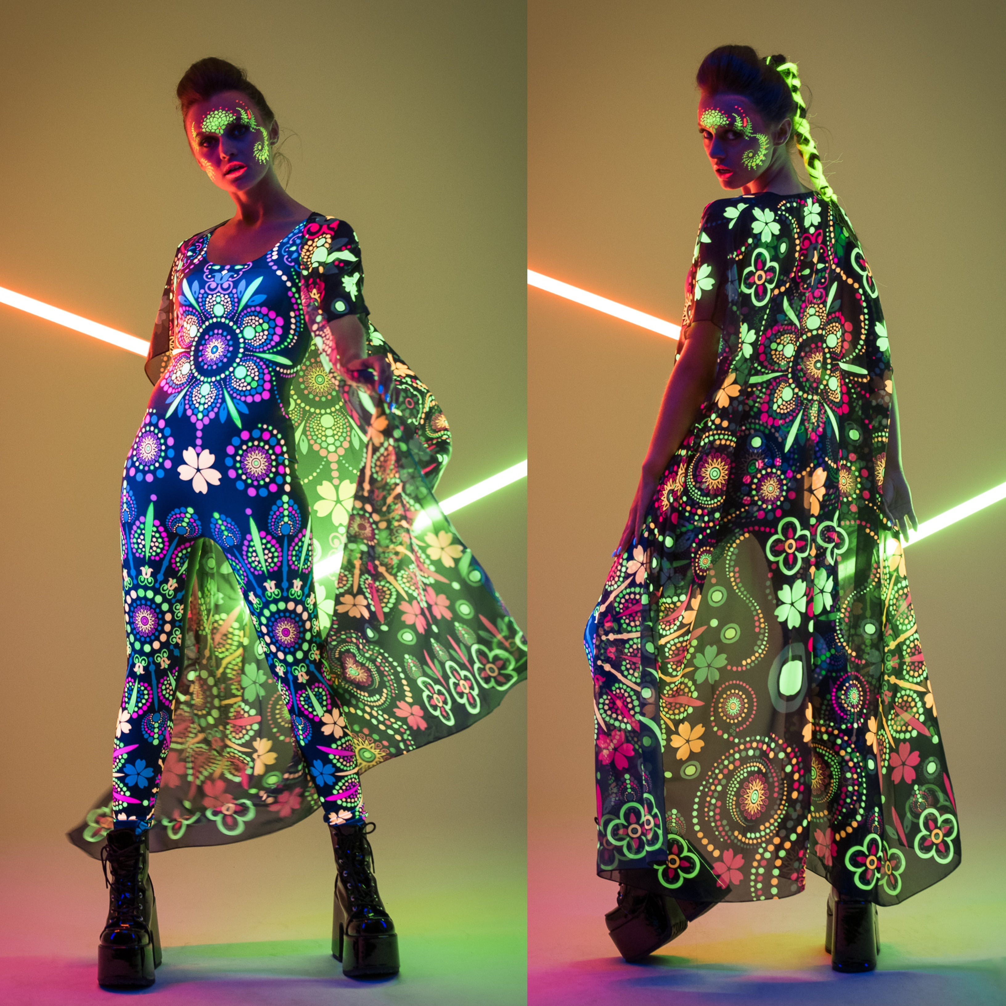 NEON MANDALA Scoop Neck Jumpsuit - UV Reactive - Style Solo or Set